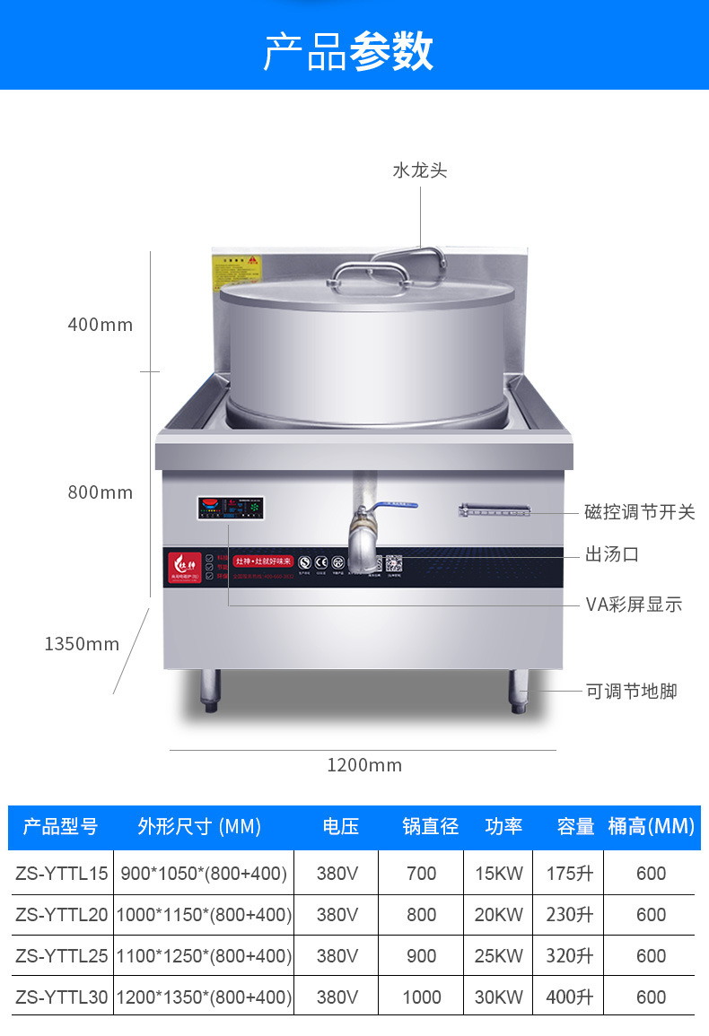 Bếp súp tích hợp điện từ Bếp súp lớn 25kw công suất cao nhà hàng căng tin bếp súp cừu quy mô lớn thương mại