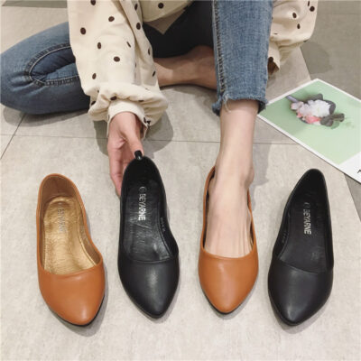 BEYARNE giày nữ da mềm đáy mềm kẹo sắc tố bề mặt nông miệng giày đơn gót phẳng giày bệt cỡ lớn giày