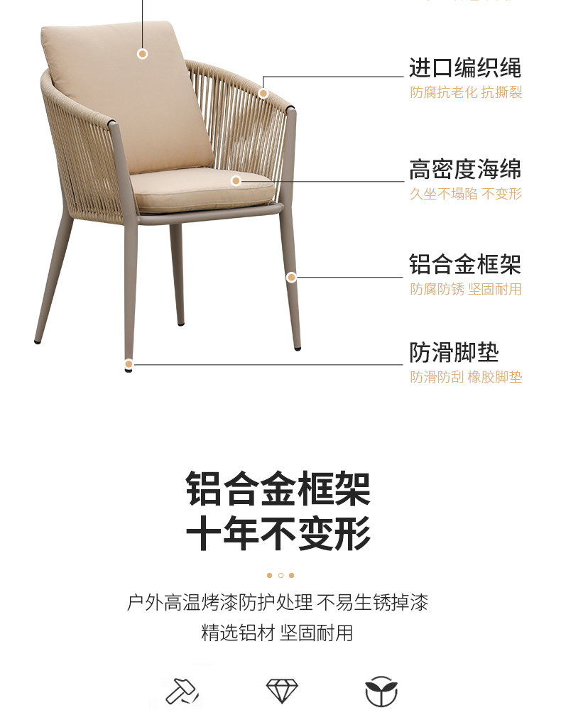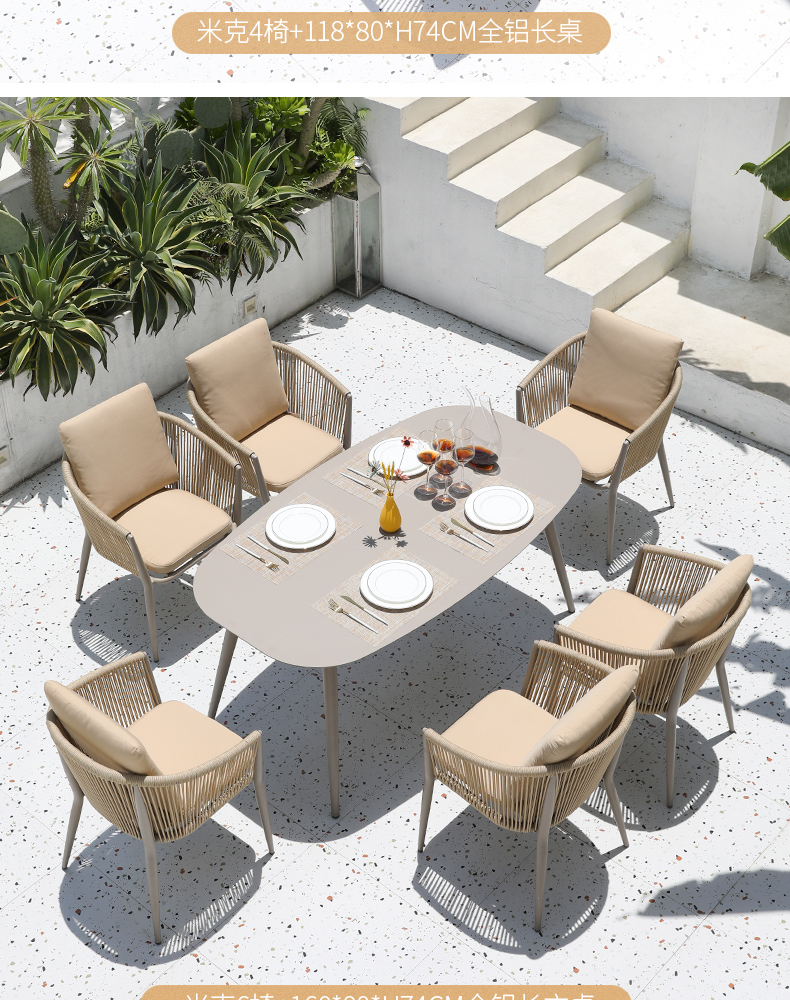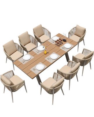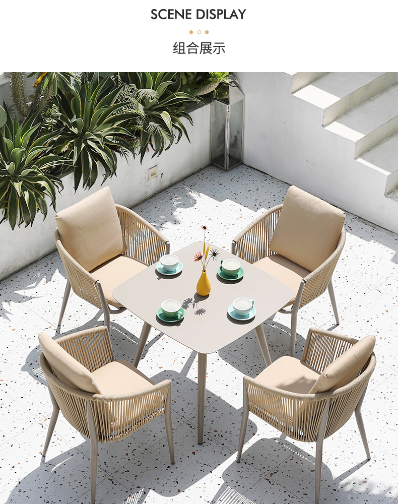 Biệt thự ngoài trời bàn ghế sân vườn ngoài trời gỗ nhựa sân vườn ghế mây không thấm nước chống nắng sân thượng mây thư giãn lưới bàn ghế màu đỏ