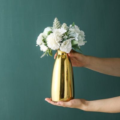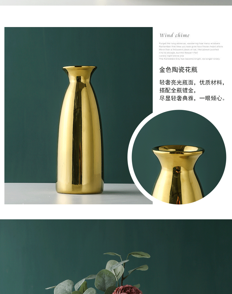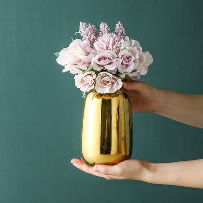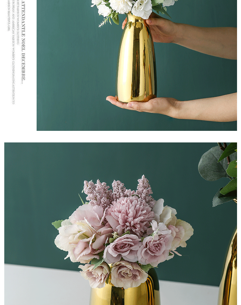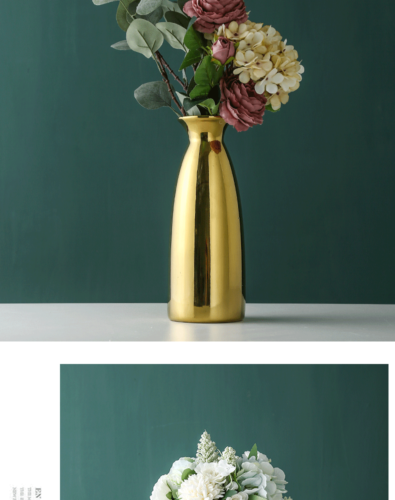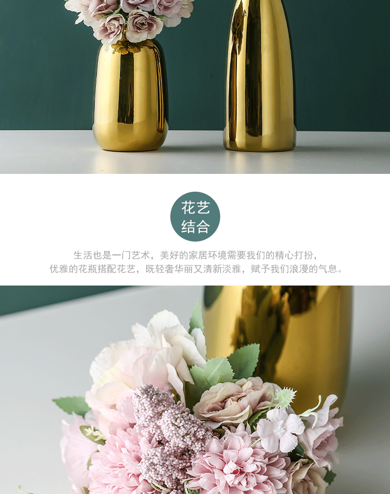 Bình hoa nhỏ bằng gốm sứ vàng hiện đại trang trí phòng khách cắm hoa mô phỏng hoa khô Tủ tivi Bắc Âu trang trí tủ rượu Đề xuất của nhà thiết kế.
