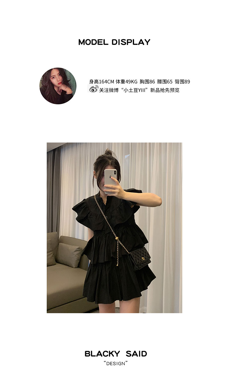 BLACKY cô gái dễ thương xù nhỏ váy bay tay áo váy của phụ nữ 2022 mới của phụ nữ váy