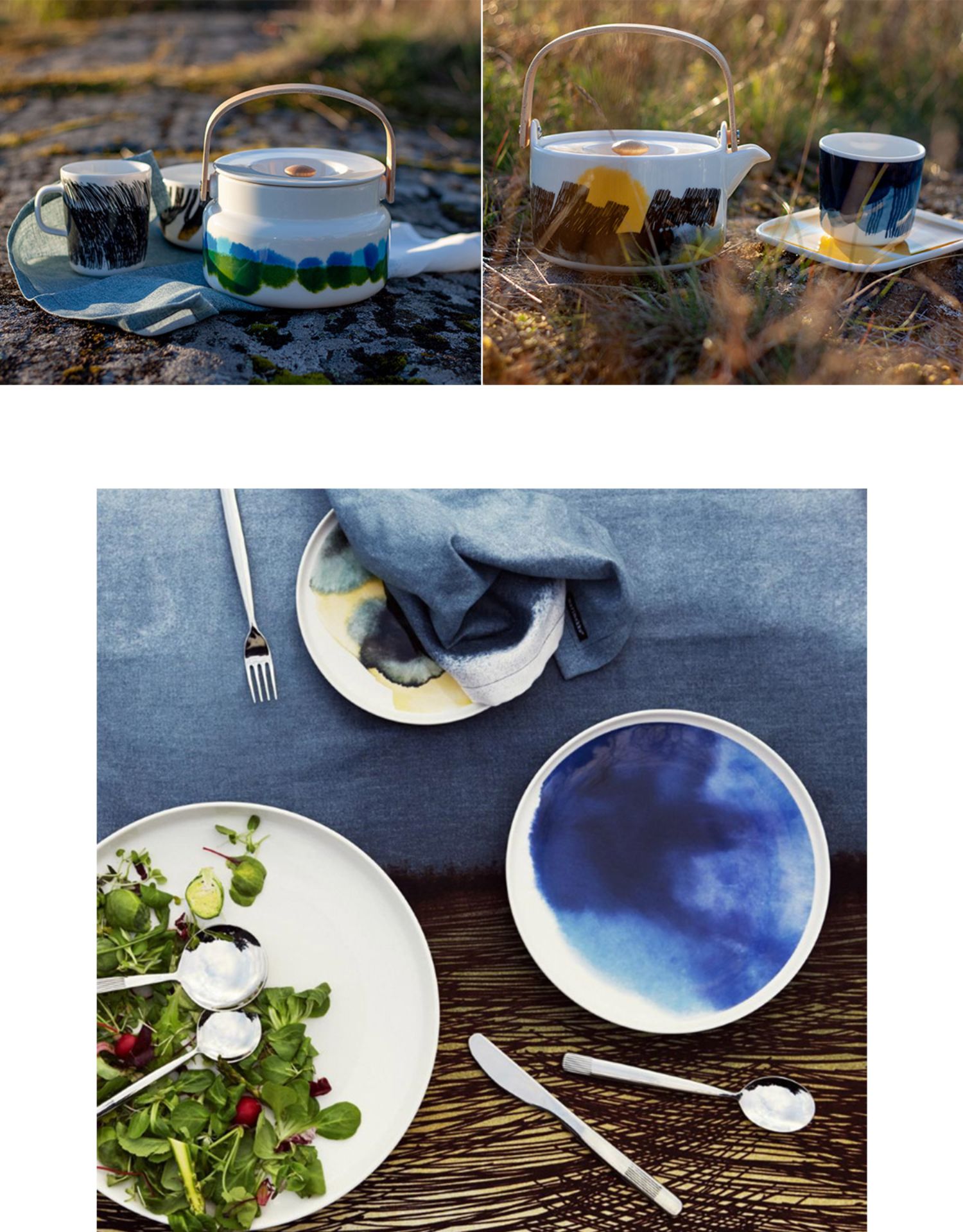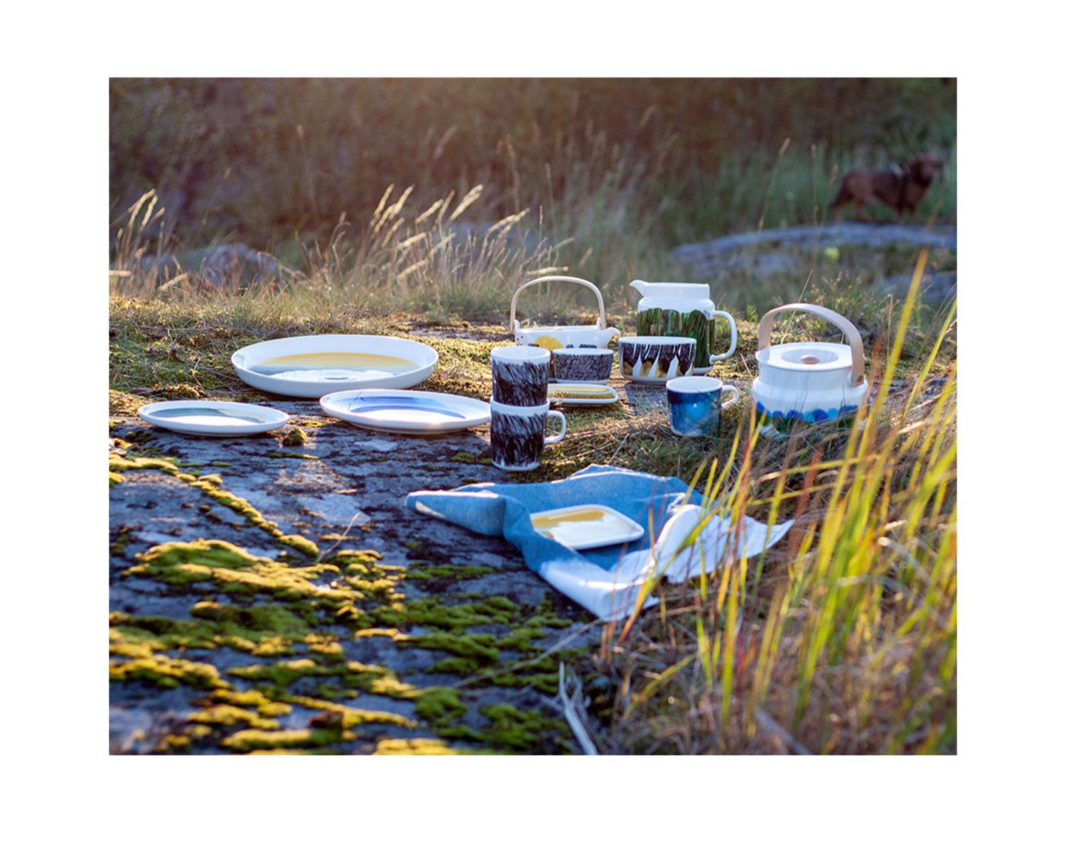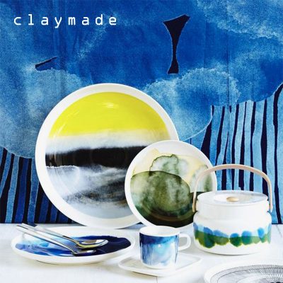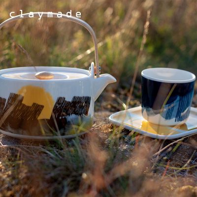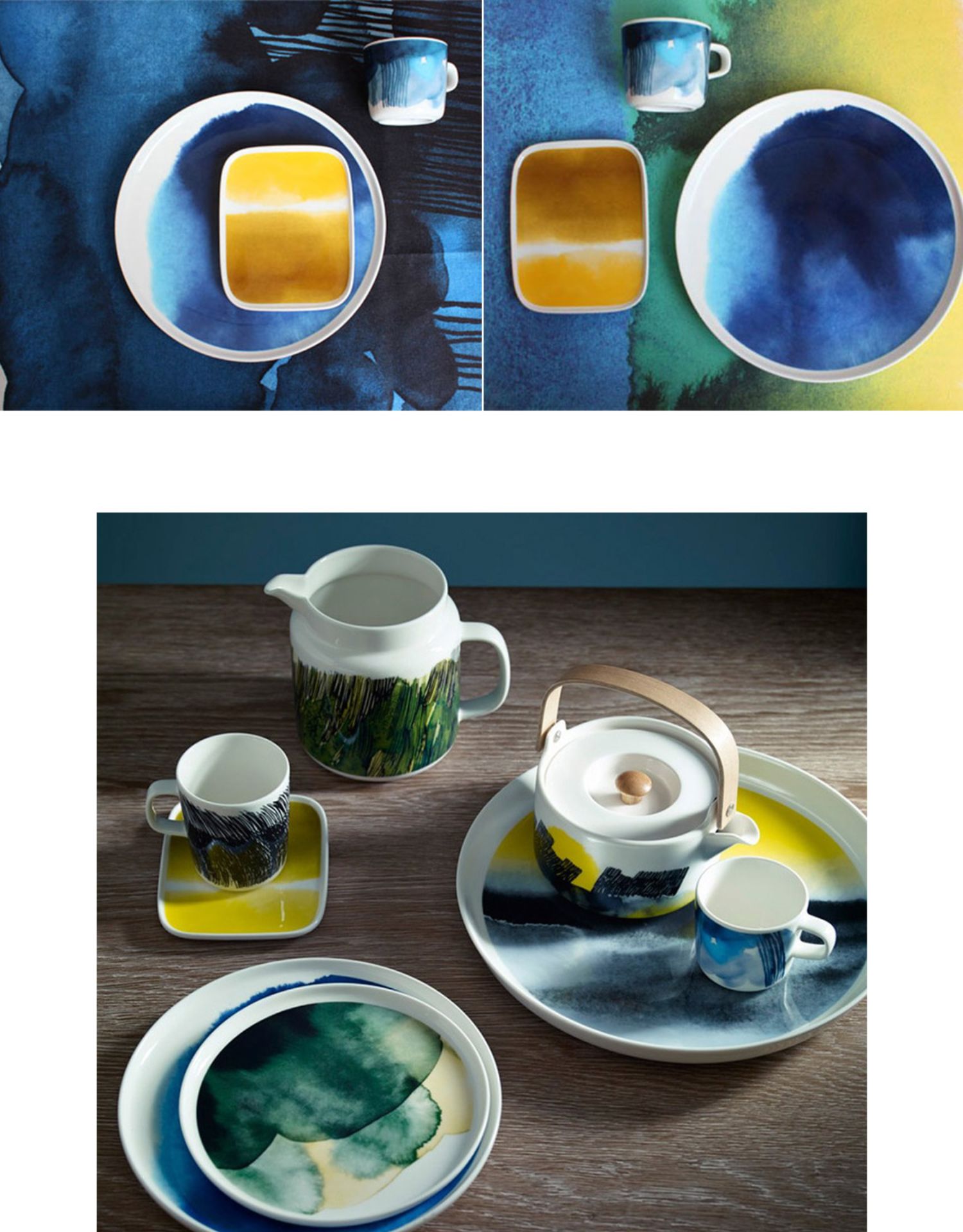 Bộ ấm chén đĩa họa tiết màu loang ngẫu hứng.