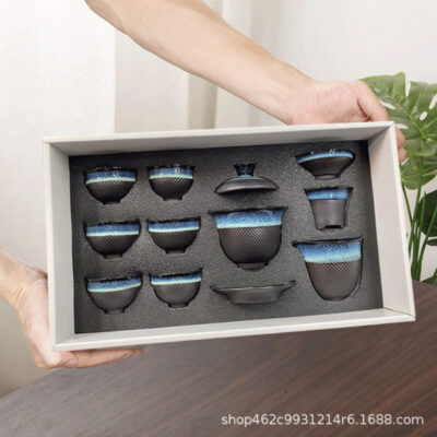 Bộ ấm trà biến hình lò nung Jianzhan Tianmu Glaze Hộ gia đình Lò nung gốm sứ Nhật Bản Ấm trà Kung Fu Bộ trà đạo hoàn chỉnh kèm theo quà lưu niệm