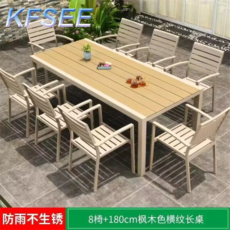 Bộ bàn ăn ngoài trời 8 ghế và 1 bàn khách sạn Kfsee là lựa chọn lý tưởng cho không gian công cộng, sân vườn hoặc khu đô thị. Sản phẩm giúp nâng cao hình ảnh chuyên nghiệp và sạch đẹp cho môi trường sống.