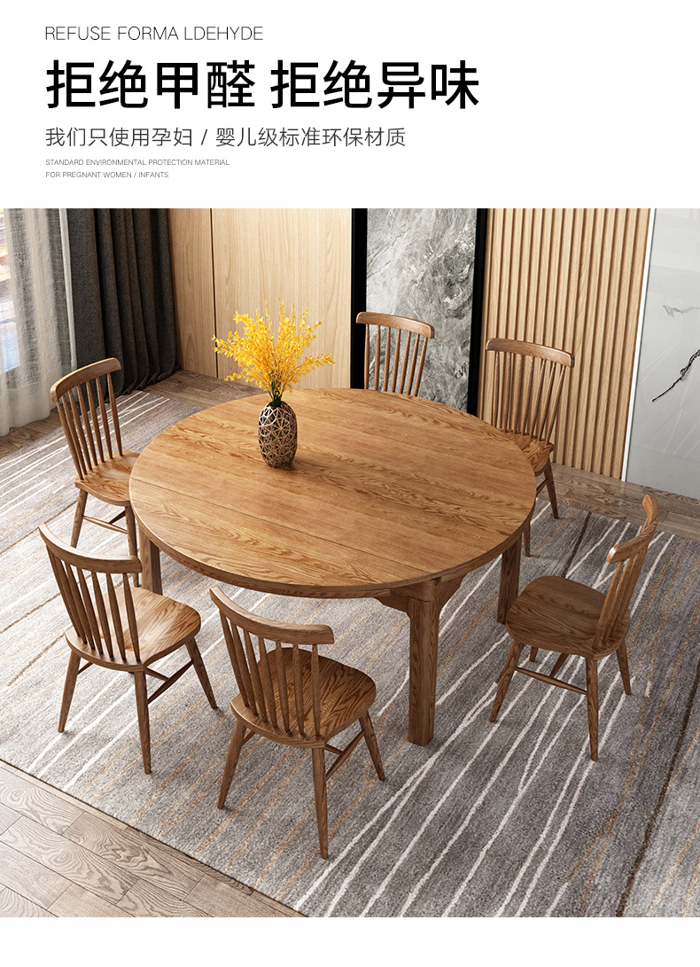 Bộ bàn ăn và ghế có thể thu vào kết hợp Bắc Âu tròn gia đình nhà bàn 6 người có thể co lại tất cả bàn ăn gấp bằng gỗ nguyên khối – Bàn ăn nhập khẩu cao cấp