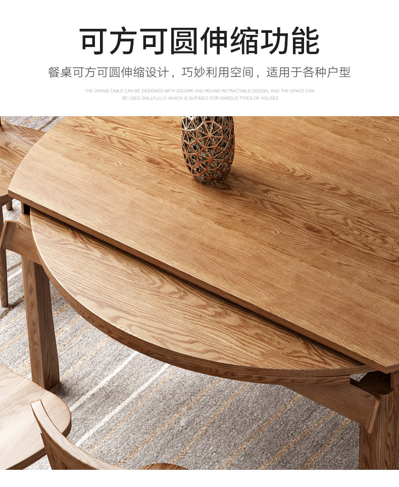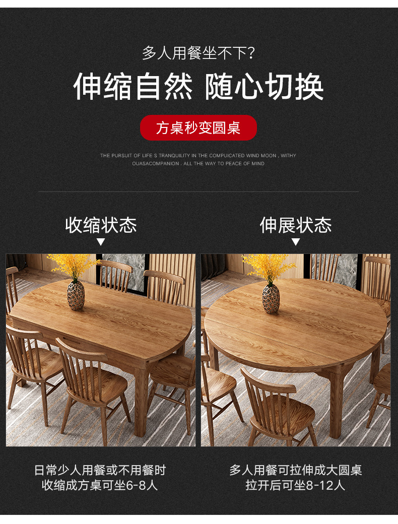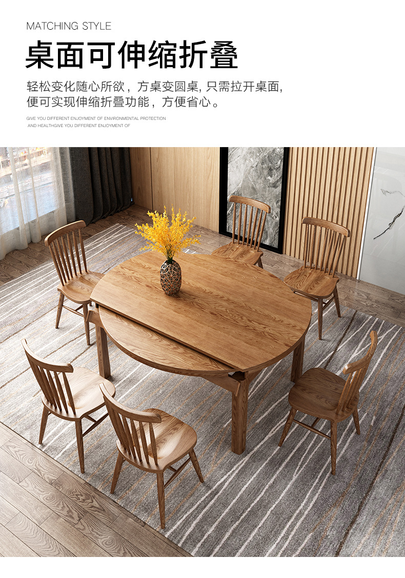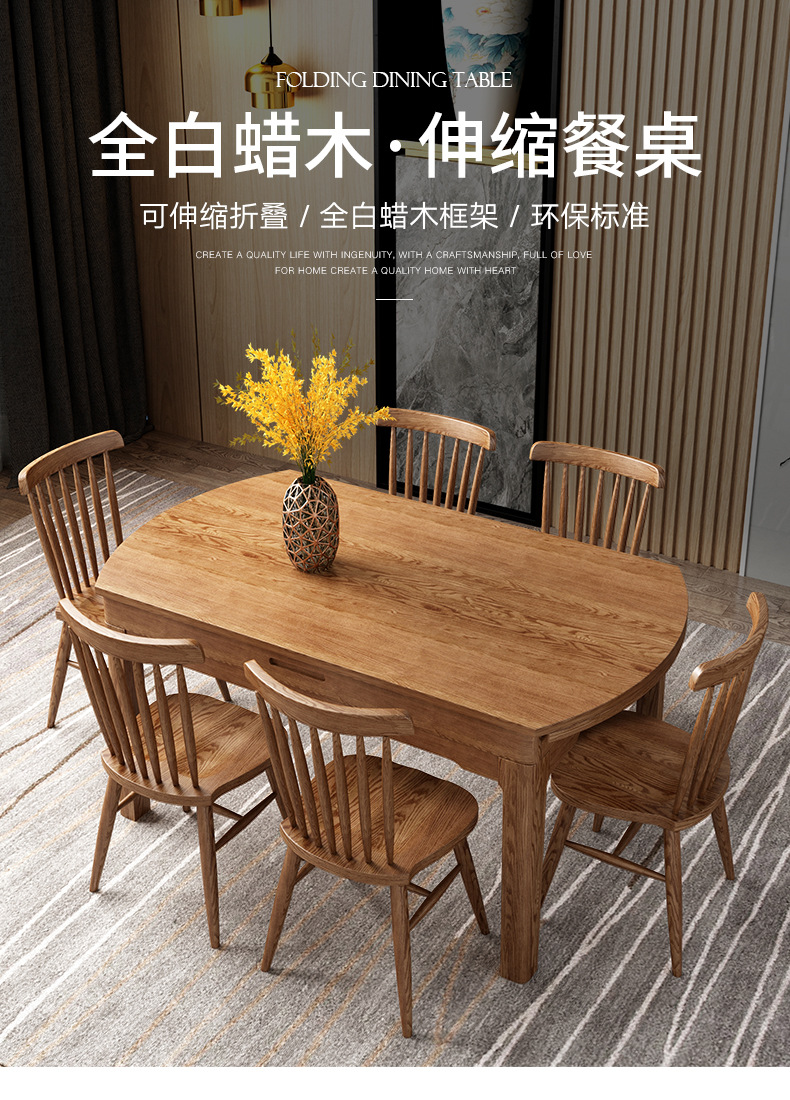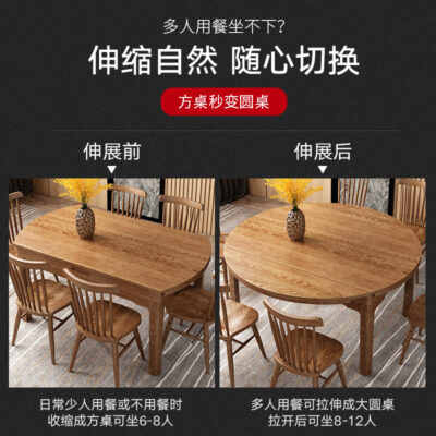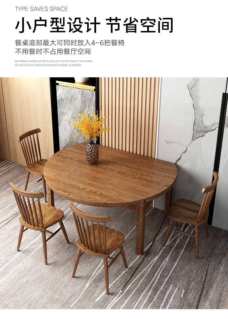 伸缩餐桌椅组合北欧圆形小户型家用可收缩6人桌子全实木折叠餐桌