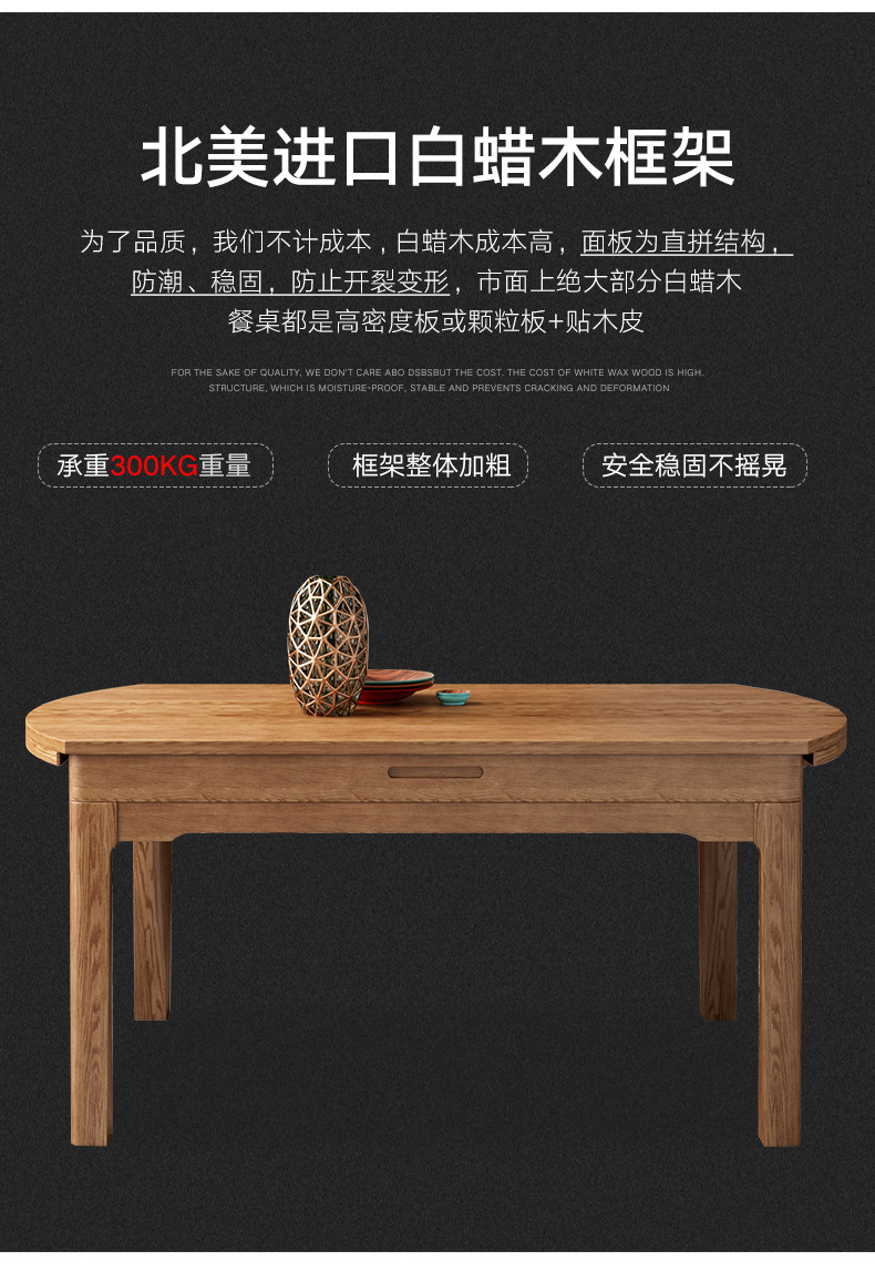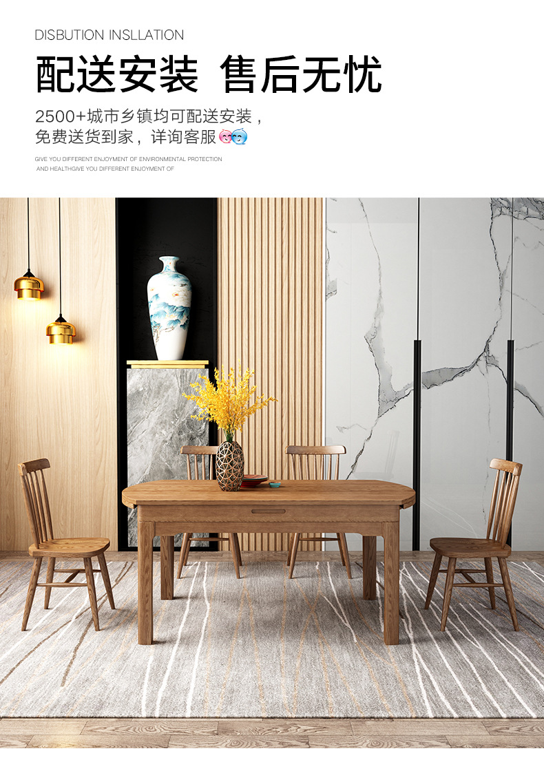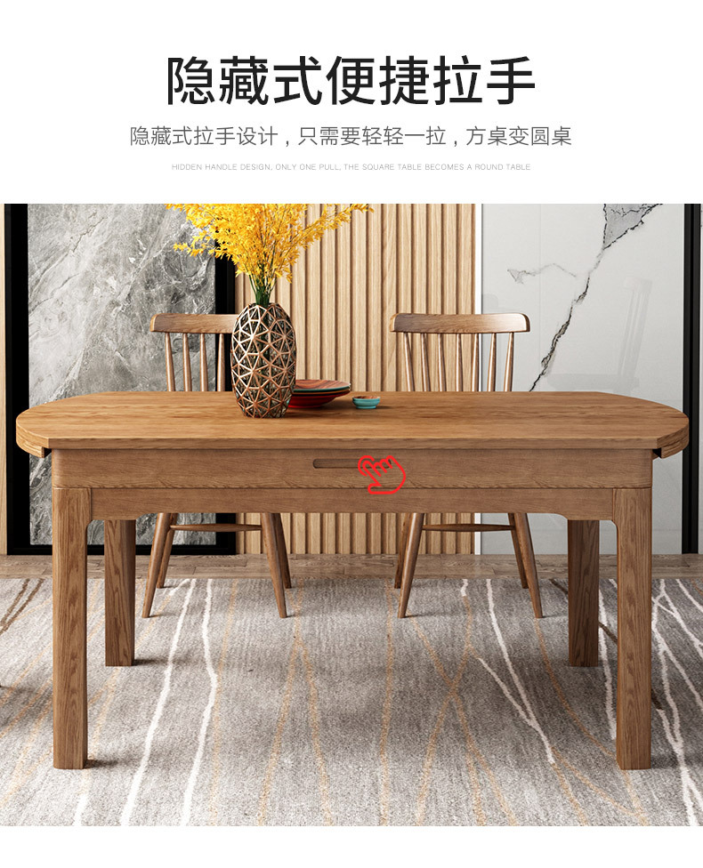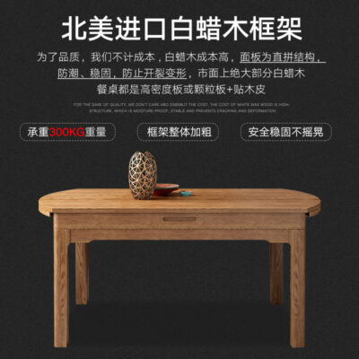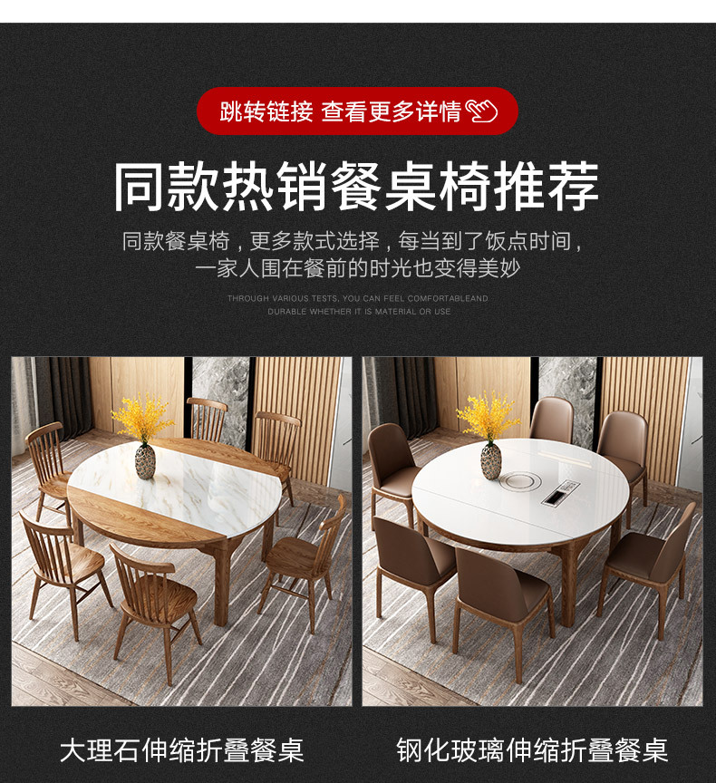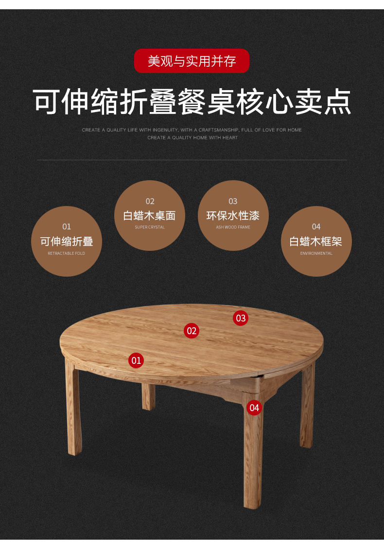 伸缩餐桌椅组合北欧圆形小户型家用可收缩6人桌子全实木折叠餐桌