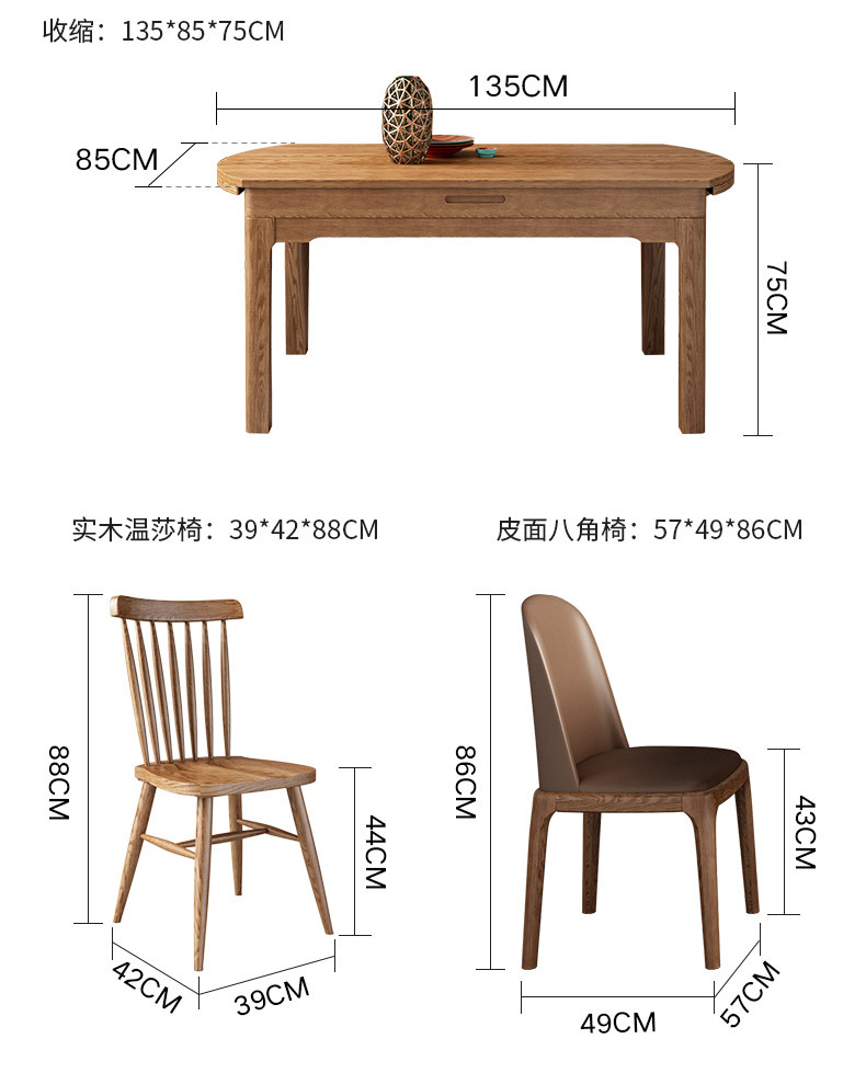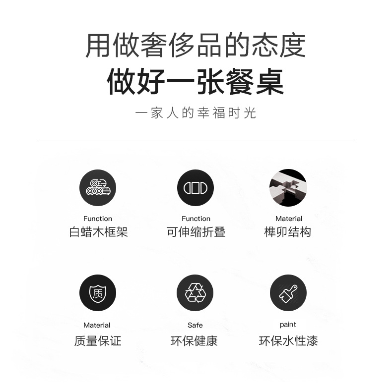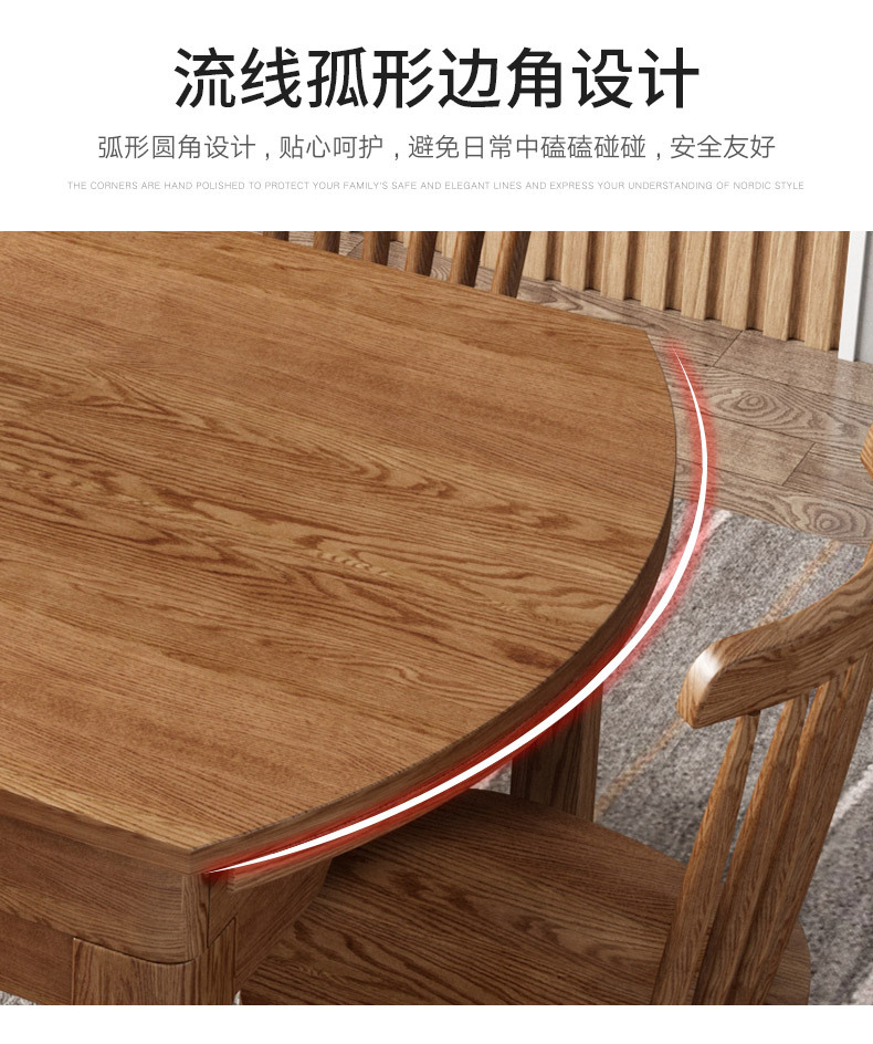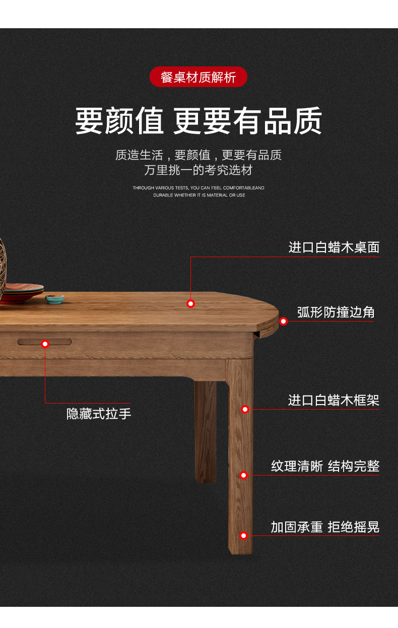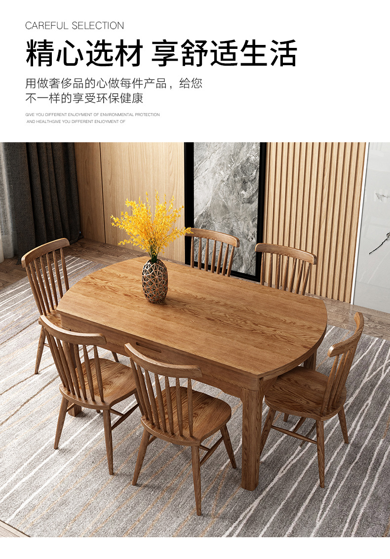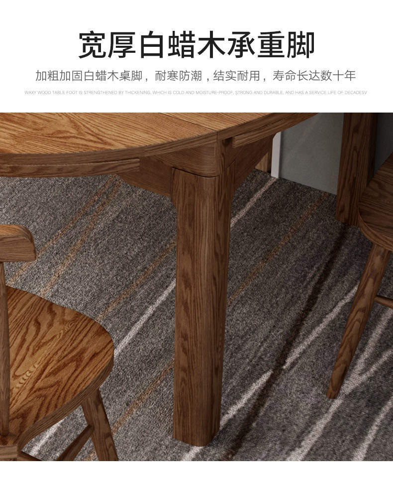 伸缩餐桌椅组合北欧圆形小户型家用可收缩6人桌子全实木折叠餐桌