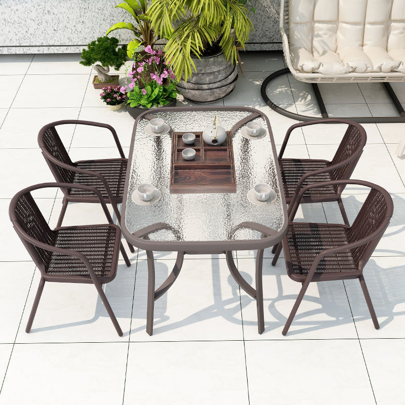 Bộ bàn ban công, bàn ghế ngoài trời, sân hiên ngoài trời bằng sắt rèn kết hợp quán cà phê, bộ ba món đơn giản, giản dị