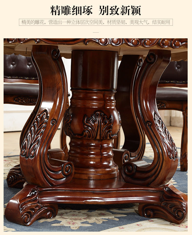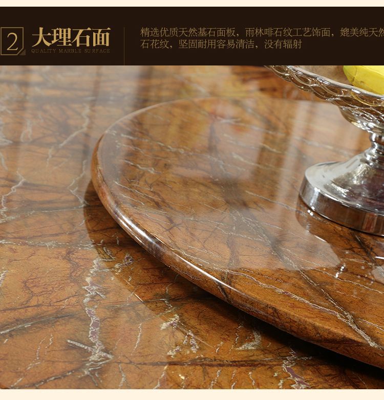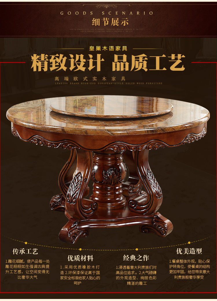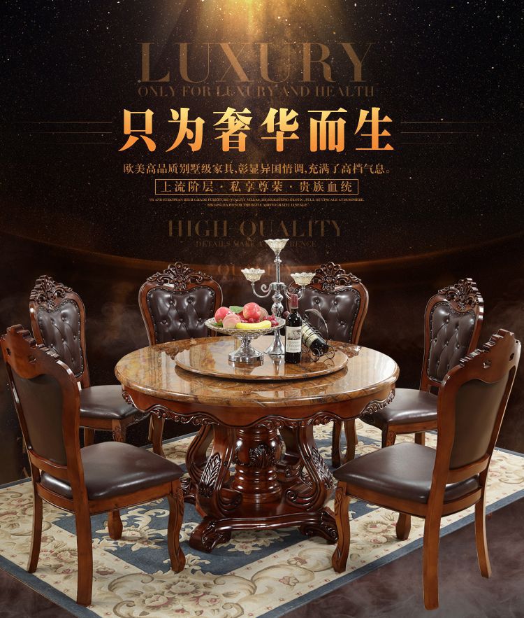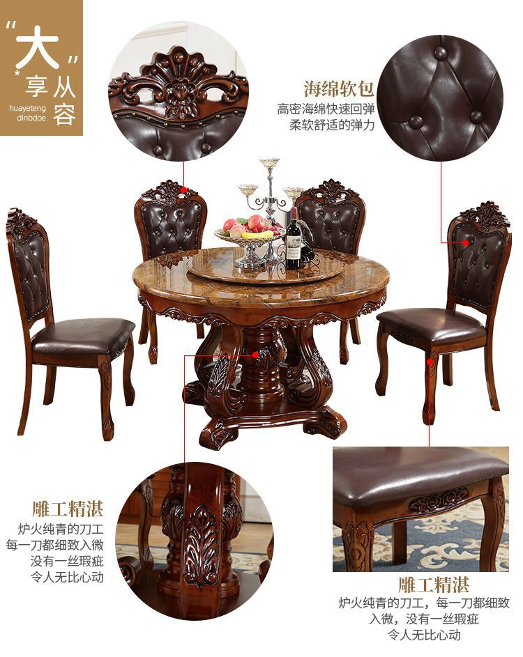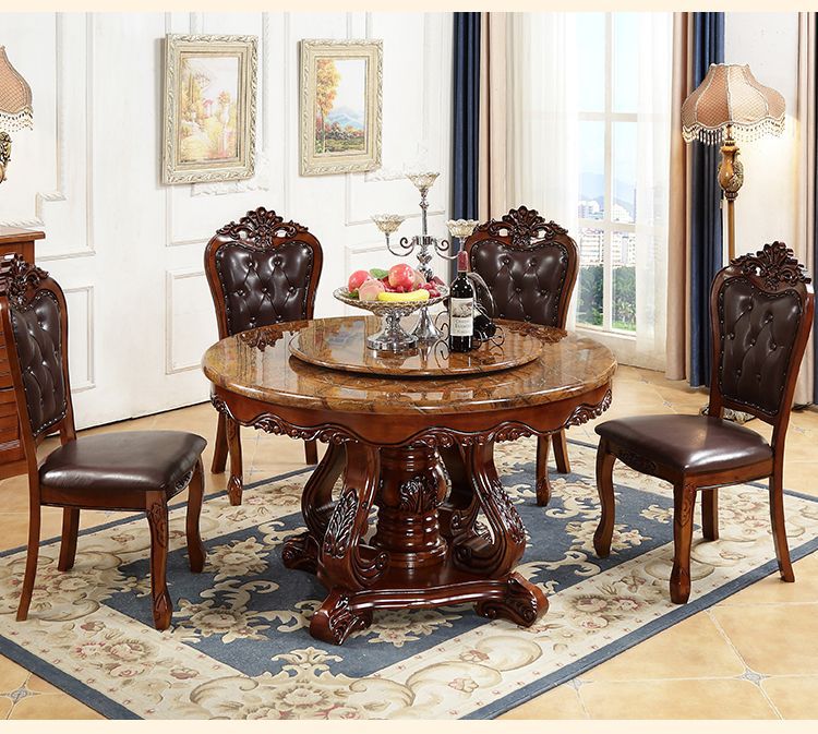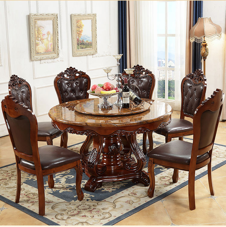 Bộ bàn ghế ăn Âu kết hợp bàn tròn mặt đá hoa cương bàn xoay Bàn ăn gỗ nguyên khối Mỹ bàn ăn tròn tại nhà cho 6 người và 8 người – Bàn ăn nhập khẩu cao cấp
