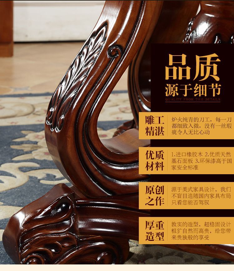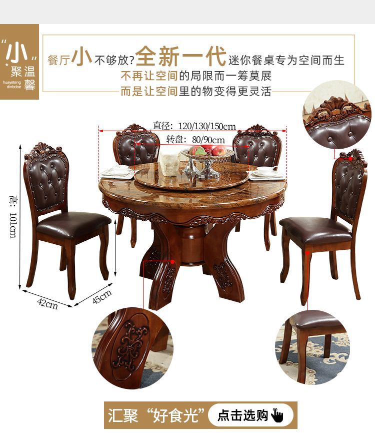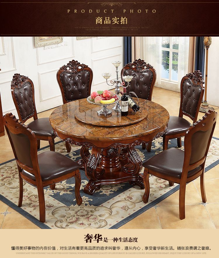 Bộ bàn ghế ăn Âu kết hợp bàn tròn mặt đá hoa cương bàn xoay Bàn ăn gỗ nguyên khối Mỹ bàn ăn tròn tại nhà cho 6 người và 8 người