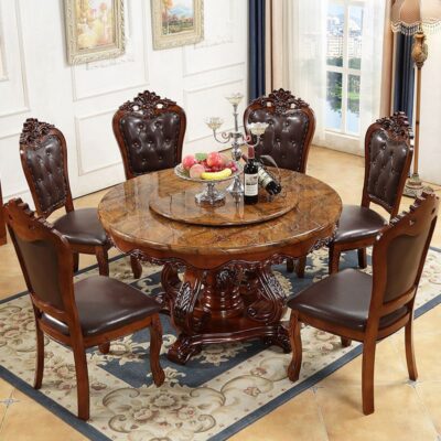 Bộ bàn ghế ăn Âu kết hợp bàn tròn mặt đá hoa cương bàn xoay Bàn ăn gỗ nguyên khối Mỹ bàn ăn tròn tại nhà cho 6 người và 8 người là sản phẩm nổi bật trong dòng bàn ăn nhập khẩu, thiết kế hiện đại và sang trọng, phù hợp với nhiều không gian nội thất cao cấp.