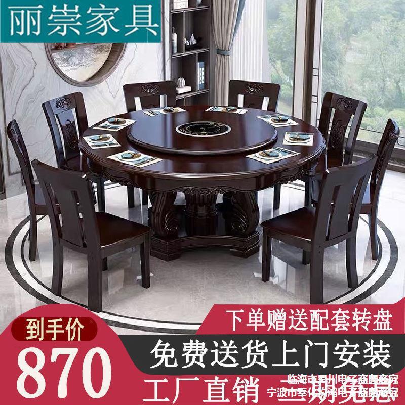 Bộ bàn ghế ăn bàn bằng gỗ kết hợp bàn tròn lớn với bàn xoay chạm khắc kiểu Trung Quốc Bàn ăn tròn cho nhà hàng 10 người tại nhà cho bữa tối