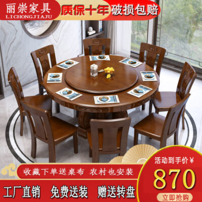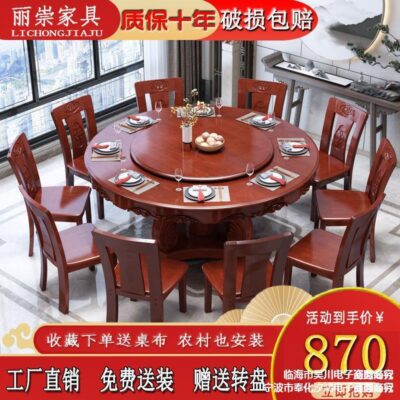 Bộ bàn ghế ăn bàn bằng gỗ kết hợp bàn tròn lớn với bàn xoay chạm khắc kiểu Trung Quốc Bàn ăn tròn cho nhà hàng 10 người tại nhà cho bữa tối – Bàn ăn nhập khẩu cao cấp