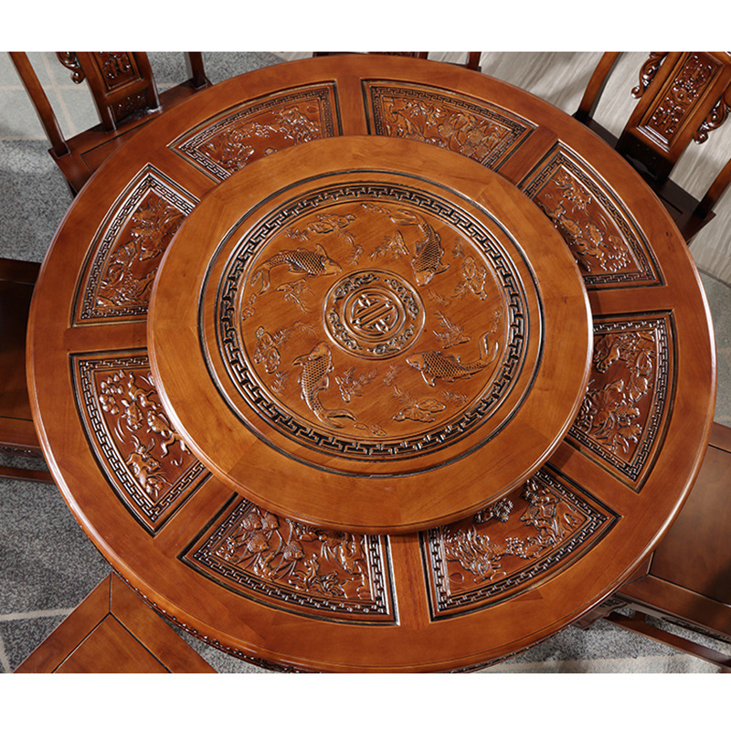Bộ bàn ghế ăn bàn bằng gỗ kết hợp nhà chạm khắc cổ Trung Quốc với bàn xoay bàn tròn Bàn ăn 10 bàn tròn – Bàn ăn nhập khẩu cao cấp