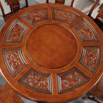 Bộ bàn ghế ăn bàn bằng gỗ kết hợp nhà chạm khắc cổ Trung Quốc với bàn xoay bàn tròn Bàn ăn 10 bàn tròn là sản phẩm nổi bật trong dòng bàn ăn nhập khẩu, thiết kế hiện đại và sang trọng, phù hợp với nhiều không gian nội thất cao cấp.