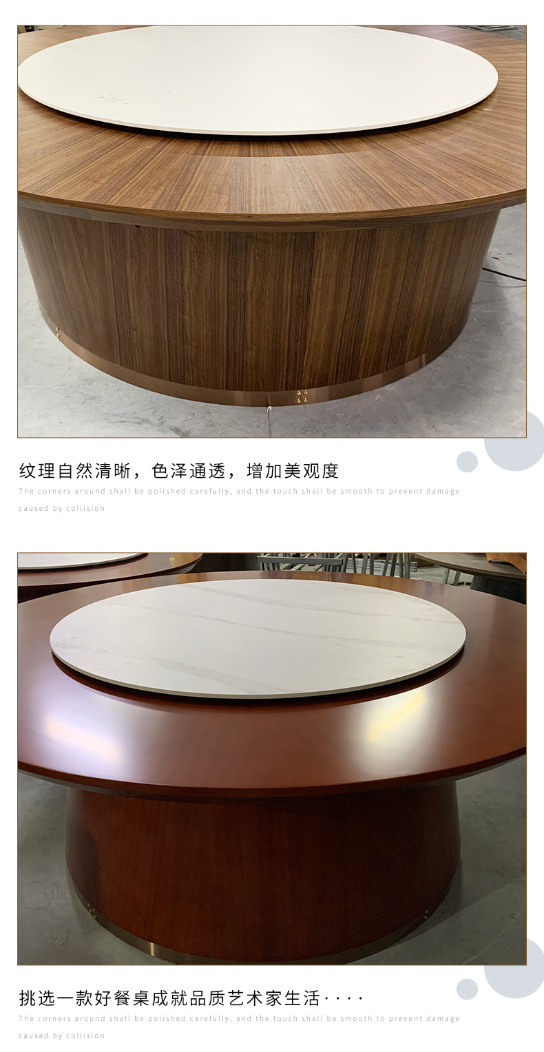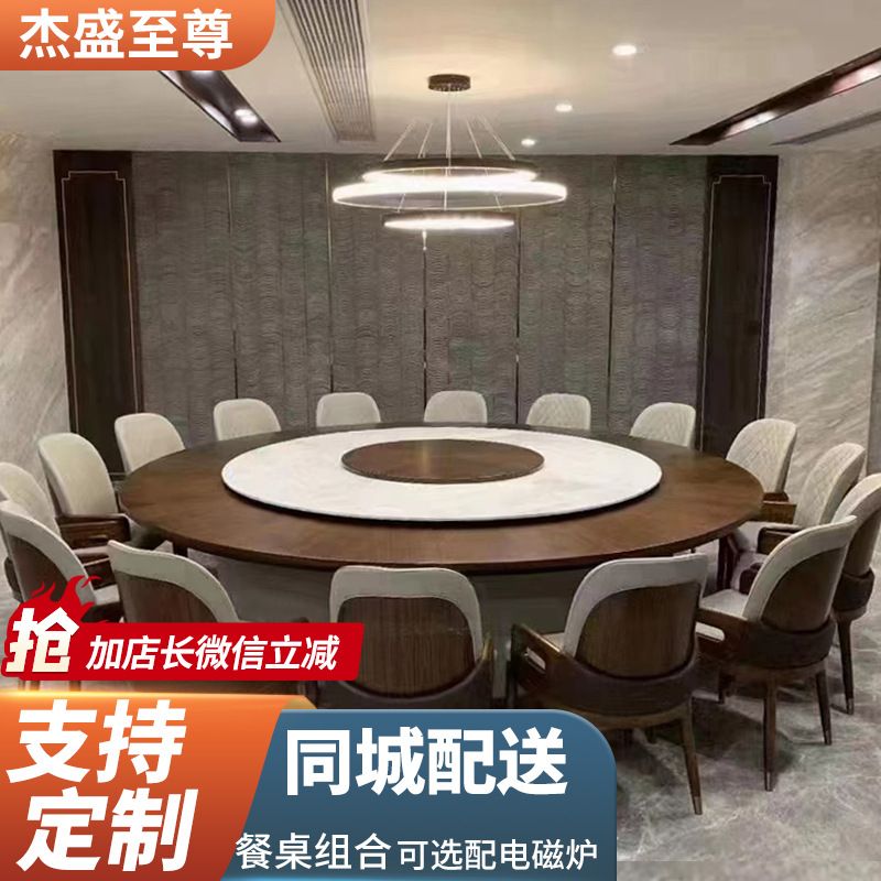 Bộ bàn ghế ăn bàn bằng gỗ kiểu Trung Quốc mới kết hợp nhà hàng lẩu bàn tròn gia đình Bàn ăn 10 người với bếp từ mặt đá bàn xoay