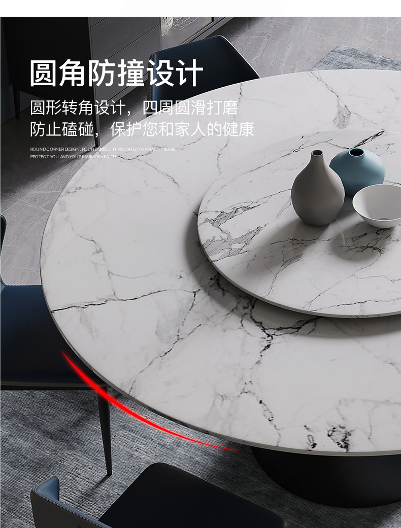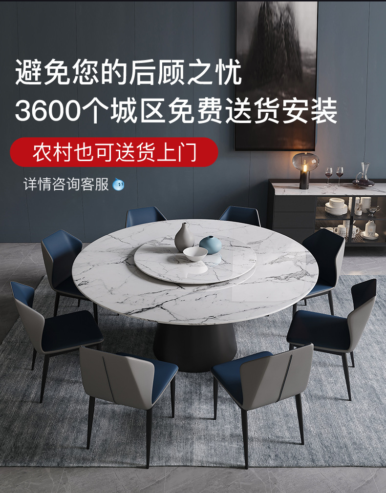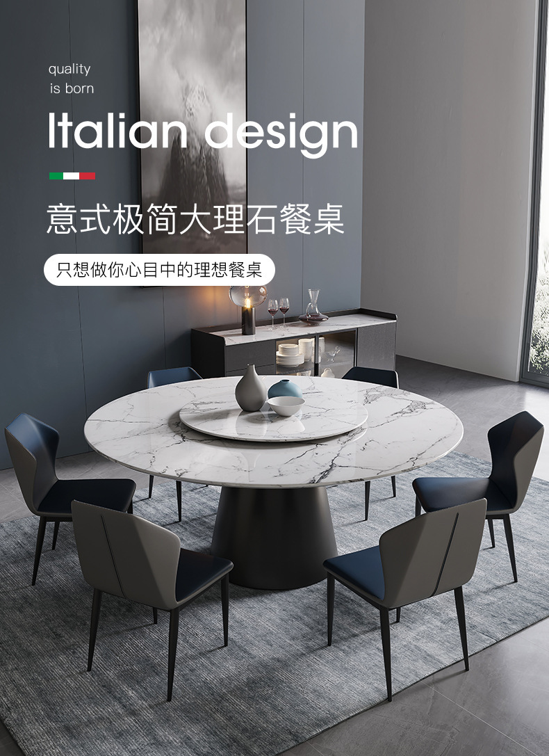 Bộ bàn ghế ăn bằng đá cẩm thạch sang trọng nhẹ kiểu Ý kết hợp khách sạn gia đình lớn nhỏ hộ gia đình bàn cơm đá phiến tròn có bàn xoay