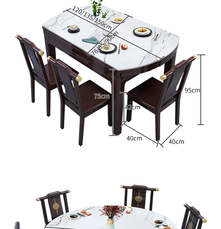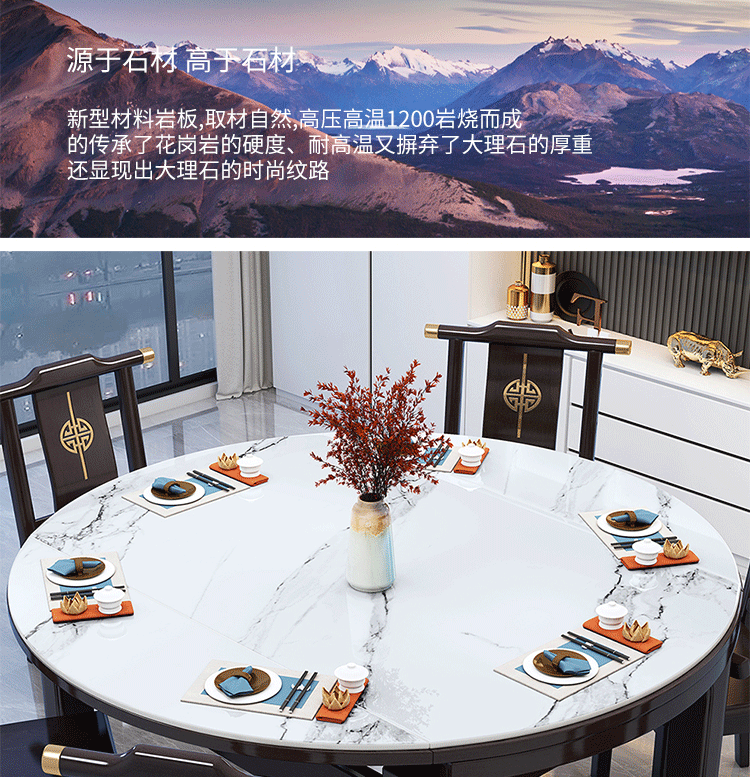 Bộ bàn ghế ăn bằng đá phong cách Trung Quốc mới và ghế hộ gia đình hình tròn có thể thu vào sử dụng kép với bếp từ Bàn ăn gấp bằng gỗ nguyên khối cho căn hộ nhỏ là sản phẩm nổi bật trong dòng bàn ăn nhập khẩu, thiết kế hiện đại và sang trọng, phù hợp với nhiều không gian nội thất cao cấp.