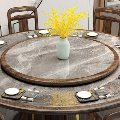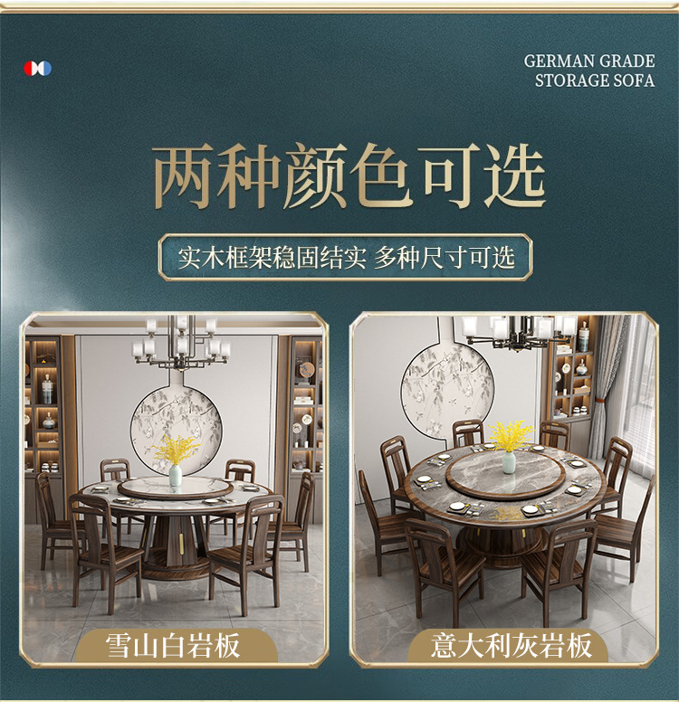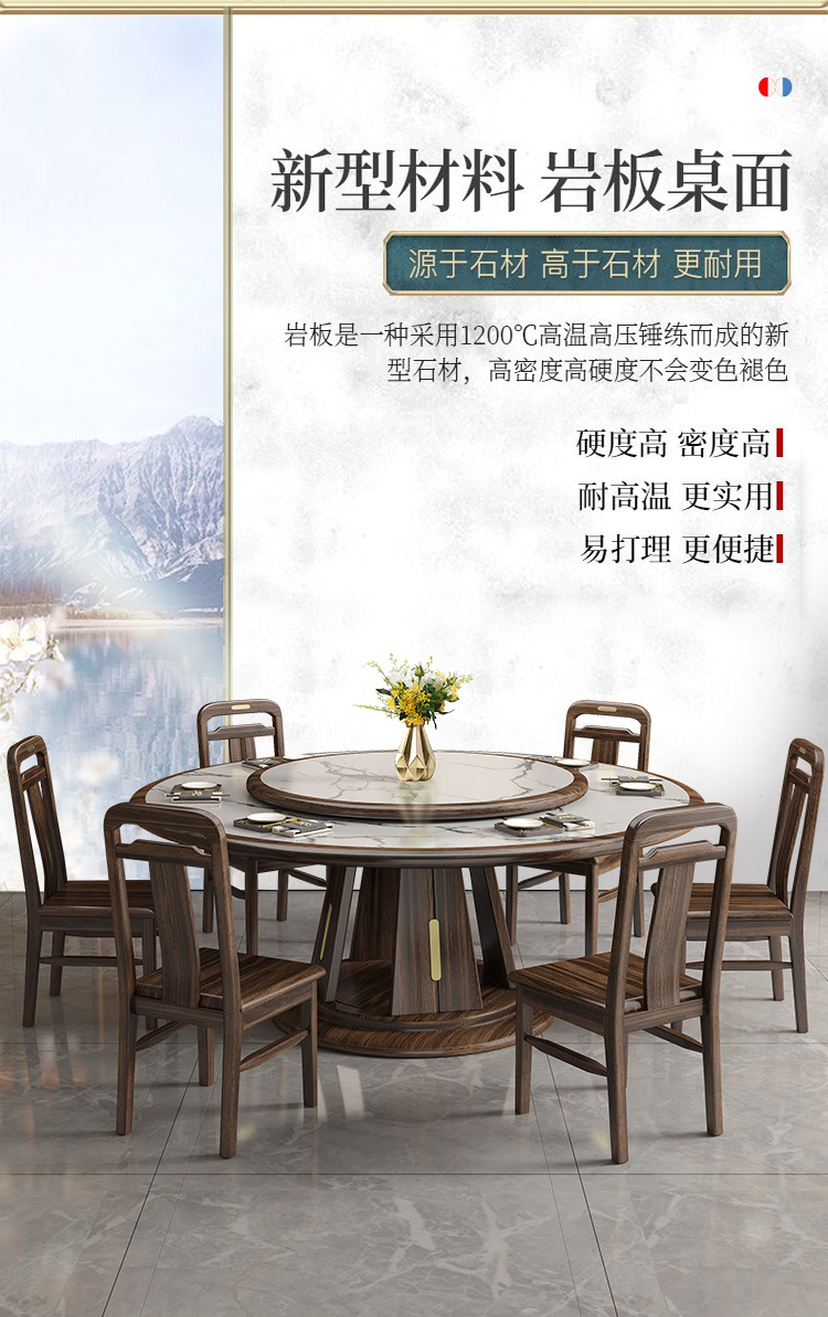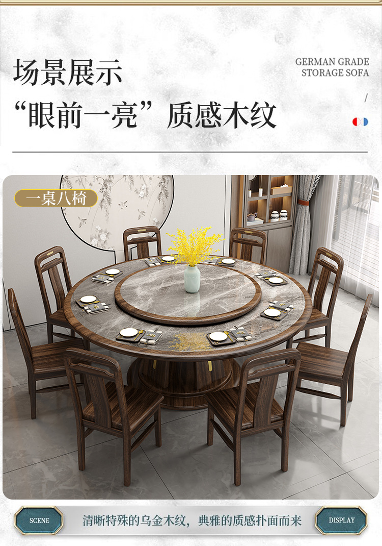 Bộ bàn ghế ăn bằng gỗ mun kiểu Trung Quốc mới kết hợp bàn tròn bằng đá phiến tròn với bàn xoay bàn ăn gia đình cho 10 người là sản phẩm nổi bật trong dòng bàn ăn nhập khẩu, thiết kế hiện đại và sang trọng, phù hợp với nhiều không gian nội thất cao cấp.