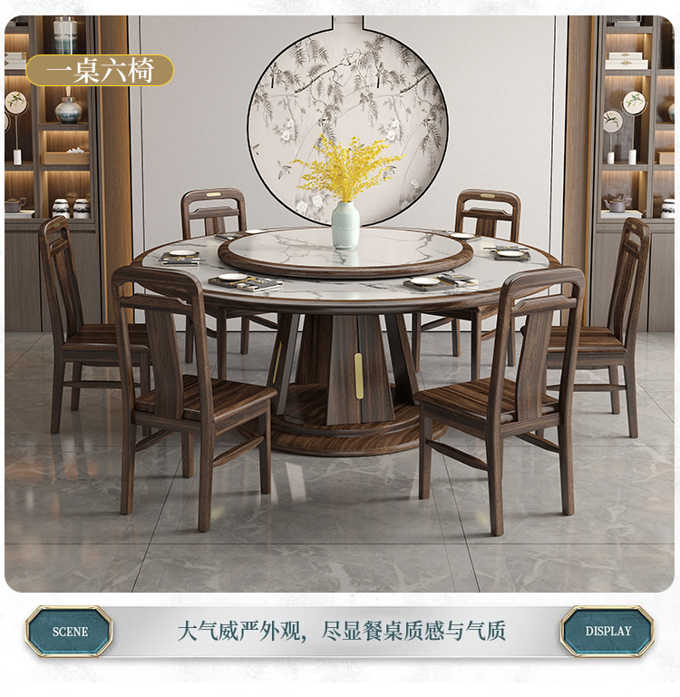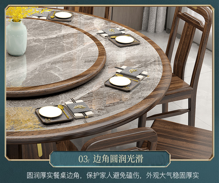 Bộ bàn ghế ăn bằng gỗ mun kiểu Trung Quốc mới kết hợp bàn tròn bằng đá phiến tròn với bàn xoay bàn ăn gia đình cho 10 người