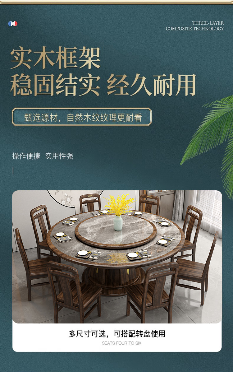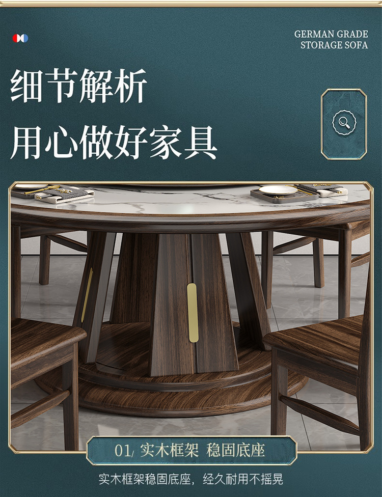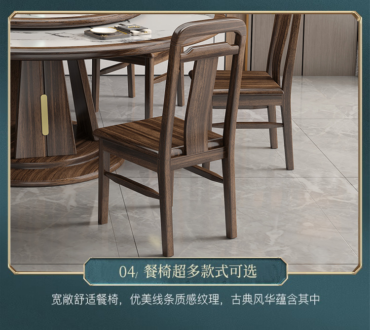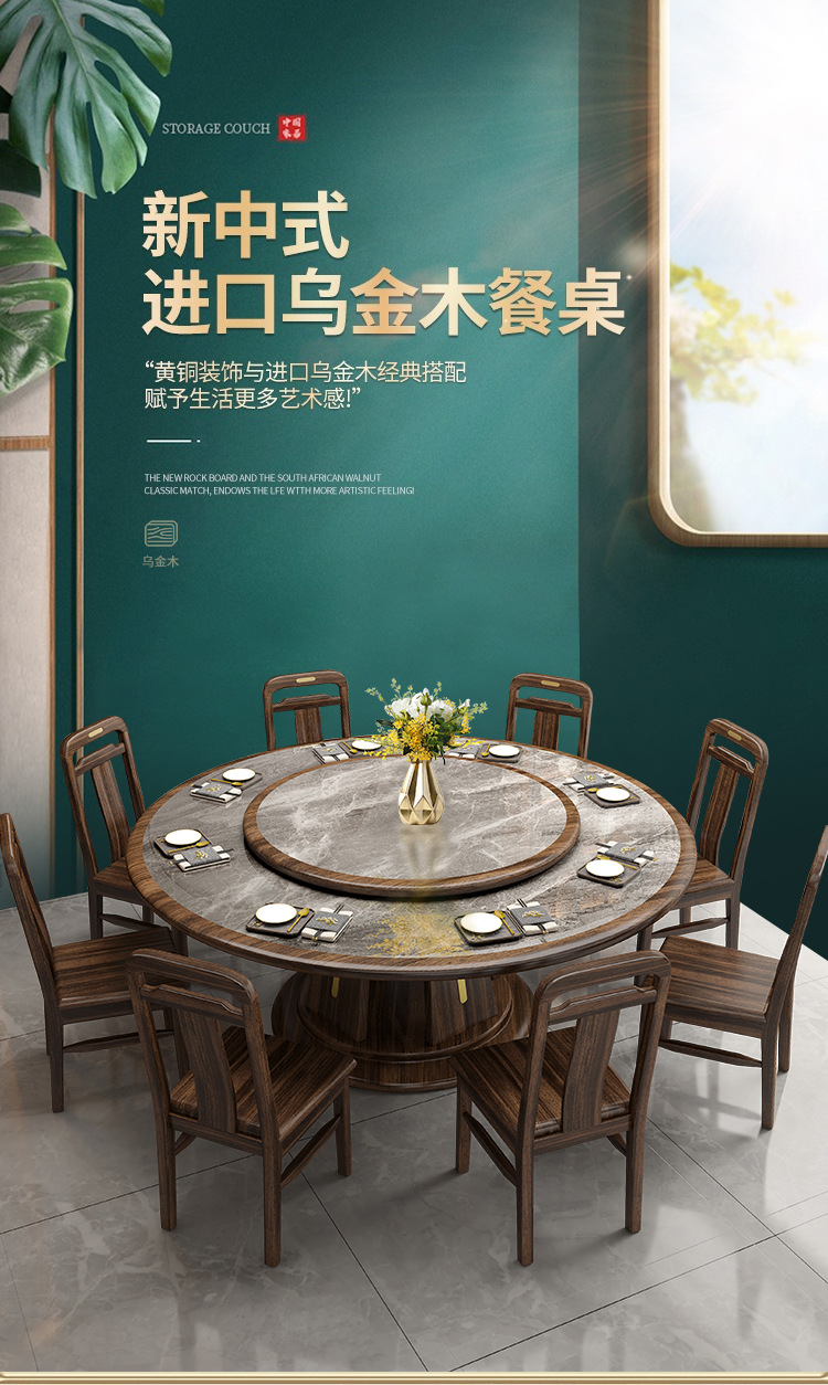 Bộ bàn ghế ăn bằng gỗ mun kiểu Trung Quốc mới kết hợp bàn tròn bằng đá phiến tròn với bàn xoay bàn ăn gia đình cho 10 người là sản phẩm nổi bật trong dòng bàn ăn nhập khẩu, thiết kế hiện đại và sang trọng, phù hợp với nhiều không gian nội thất cao cấp.
