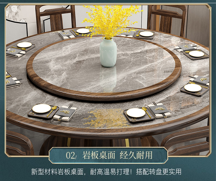 Bộ bàn ghế ăn bằng gỗ mun kiểu Trung Quốc mới kết hợp bàn tròn bằng đá phiến tròn với bàn xoay bàn ăn gia đình cho 10 người