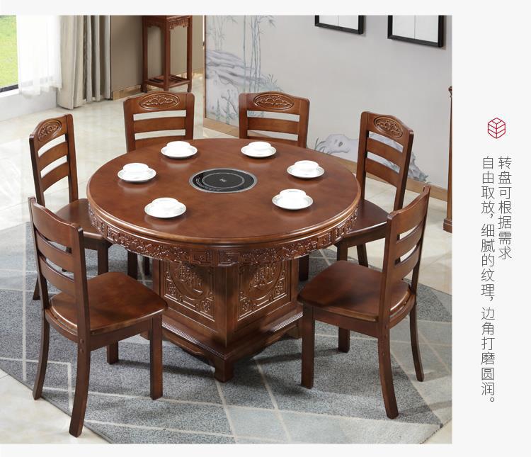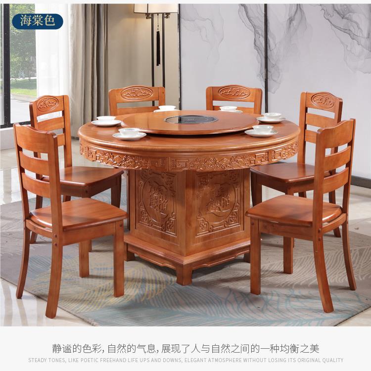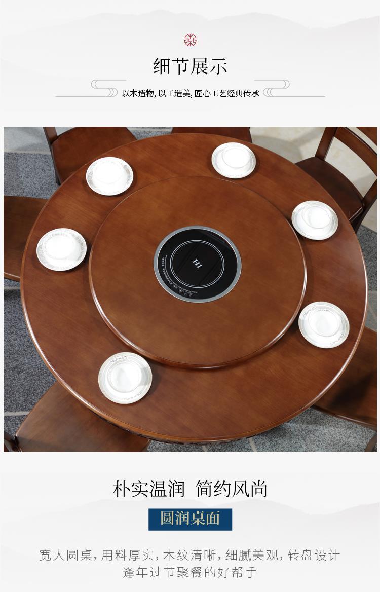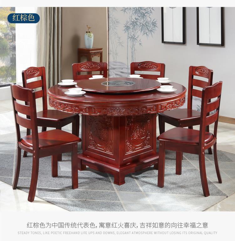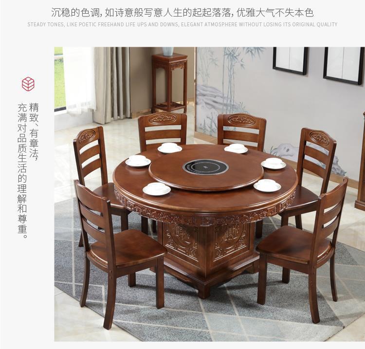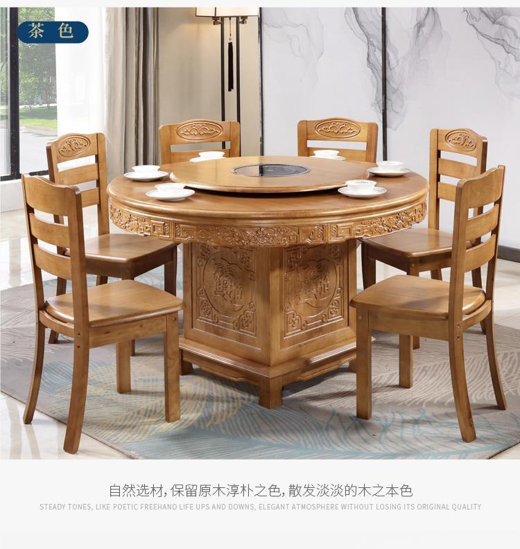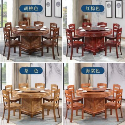 Bộ bàn ghế ăn bằng gỗ nguyên khối kiểu Trung Quốc mới Bàn lẩu 1,8 mét nhà tròn lớn có bếp từ để thu hút tài lộc và bàn kho báu – Bàn ăn nhập khẩu cao cấp
