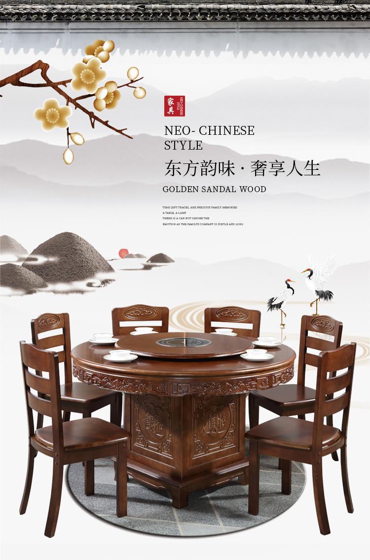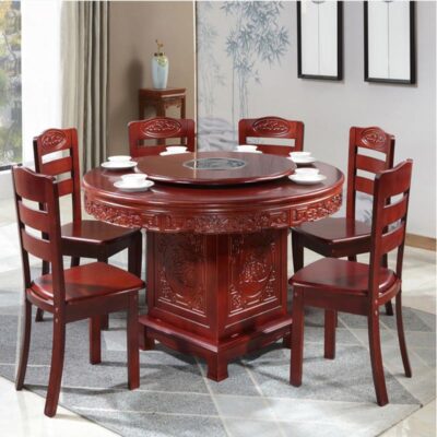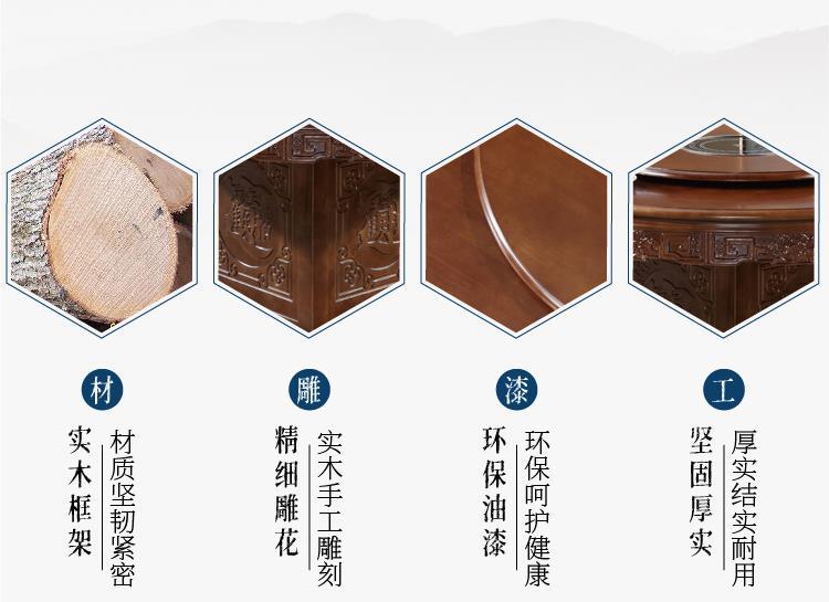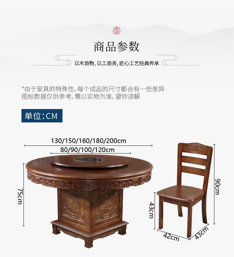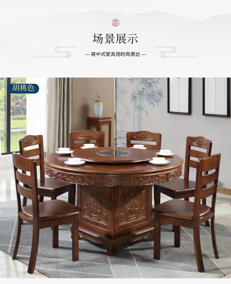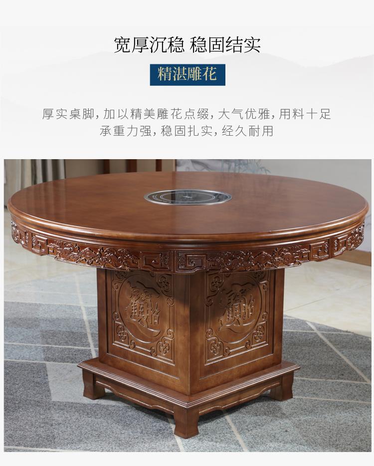 Bộ bàn ghế ăn bằng gỗ nguyên khối kiểu Trung Quốc mới Bàn lẩu 1,8 mét nhà tròn lớn có bếp từ để thu hút tài lộc và bàn kho báu – Bàn ăn nhập khẩu cao cấp