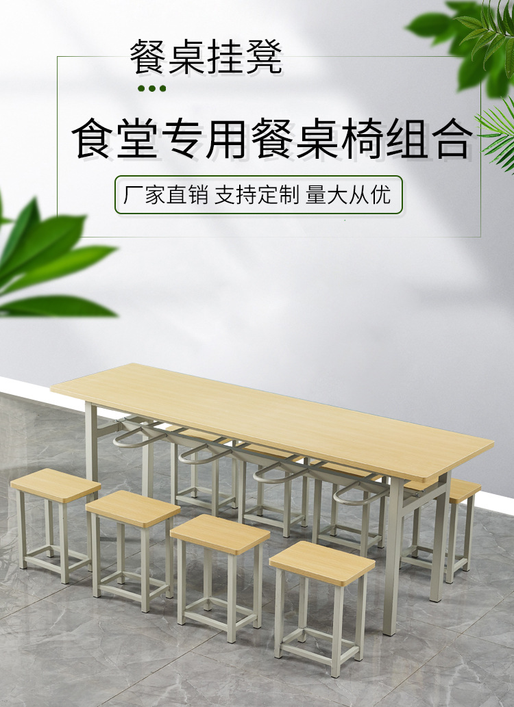 Bộ bàn ghế ăn căng tin nhà máy 4 người 6 người 8 người phân treo Bàn ăn trường học bàn ăn nhà hàng kết hợp bàn ghế đẩu