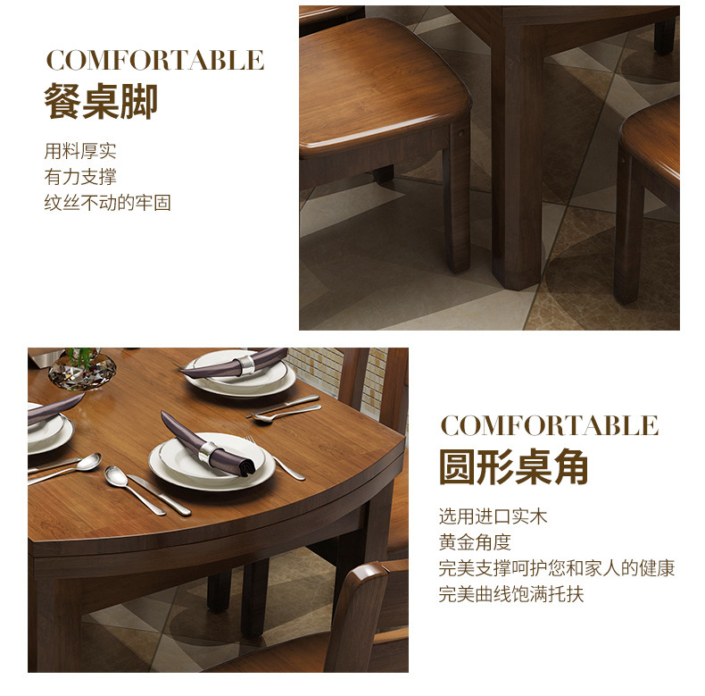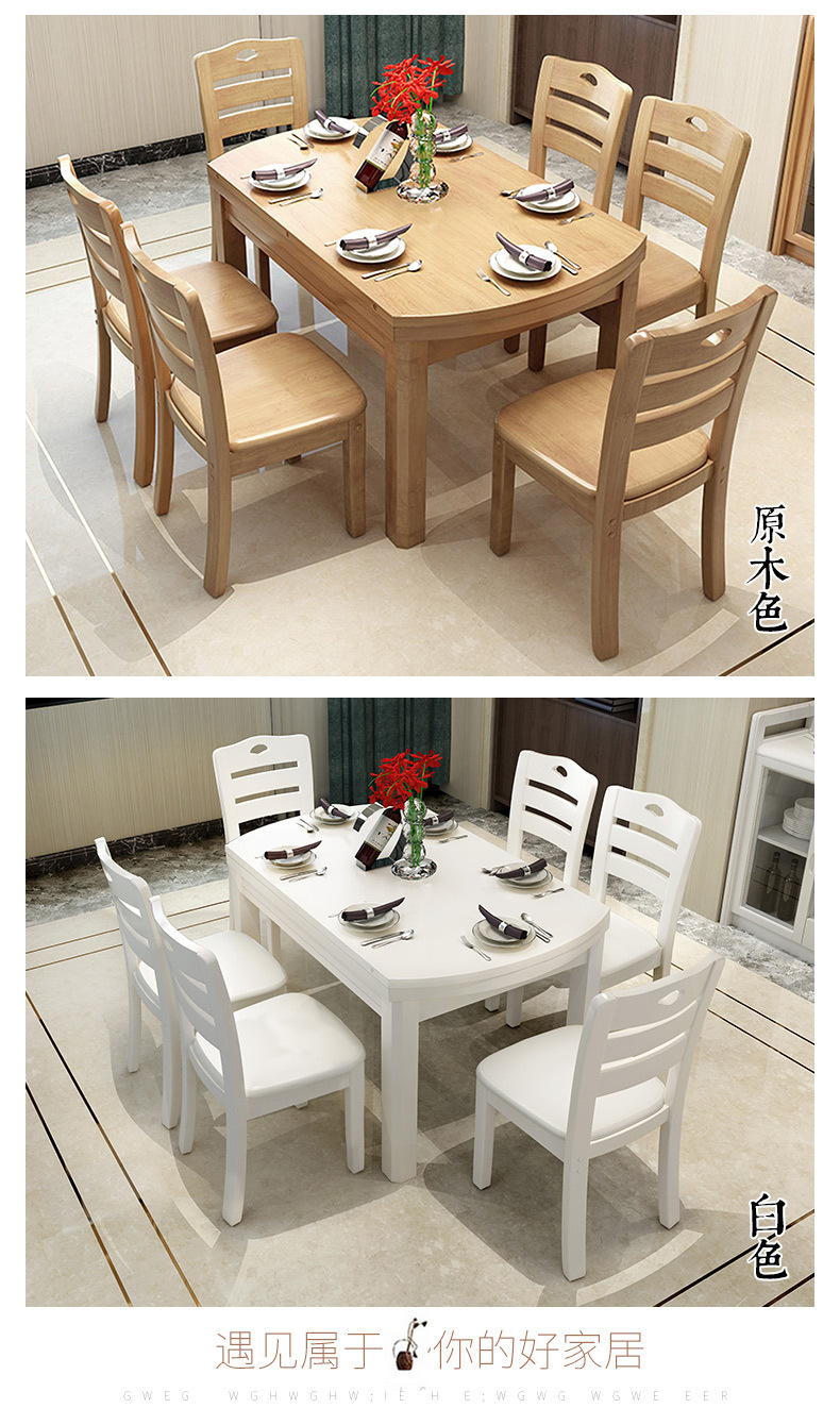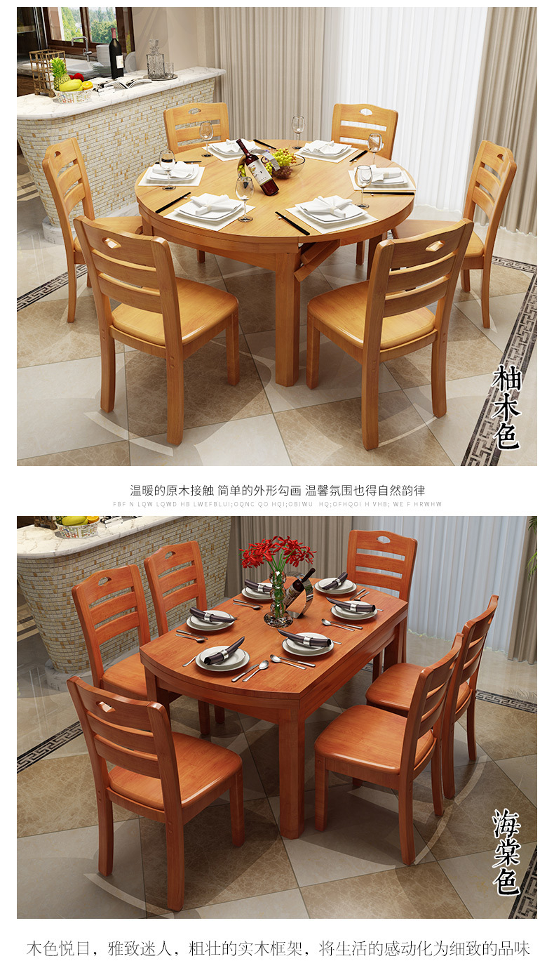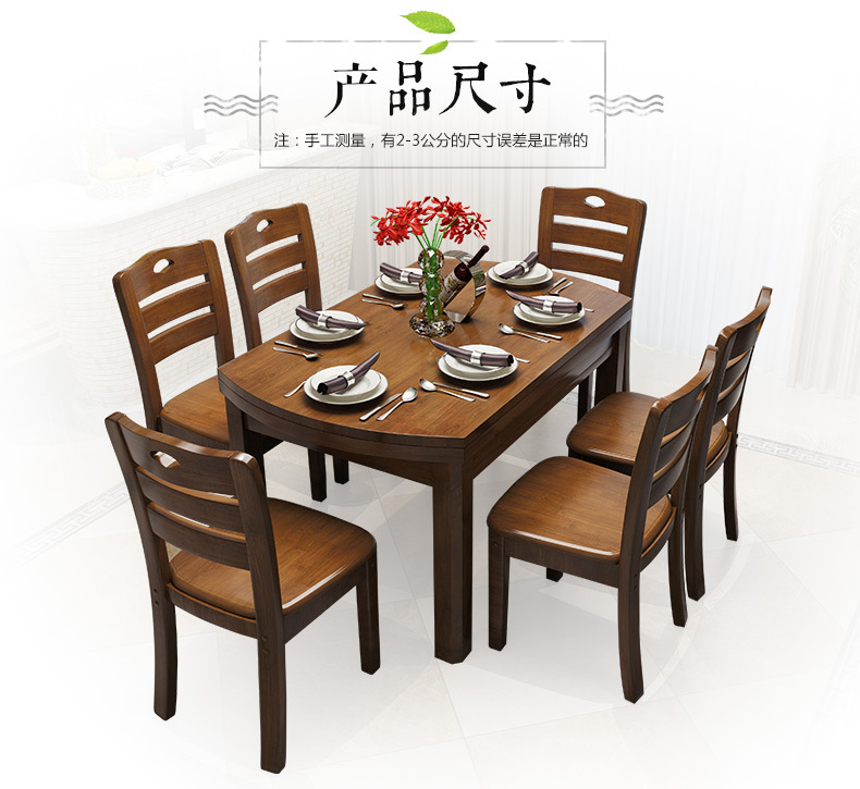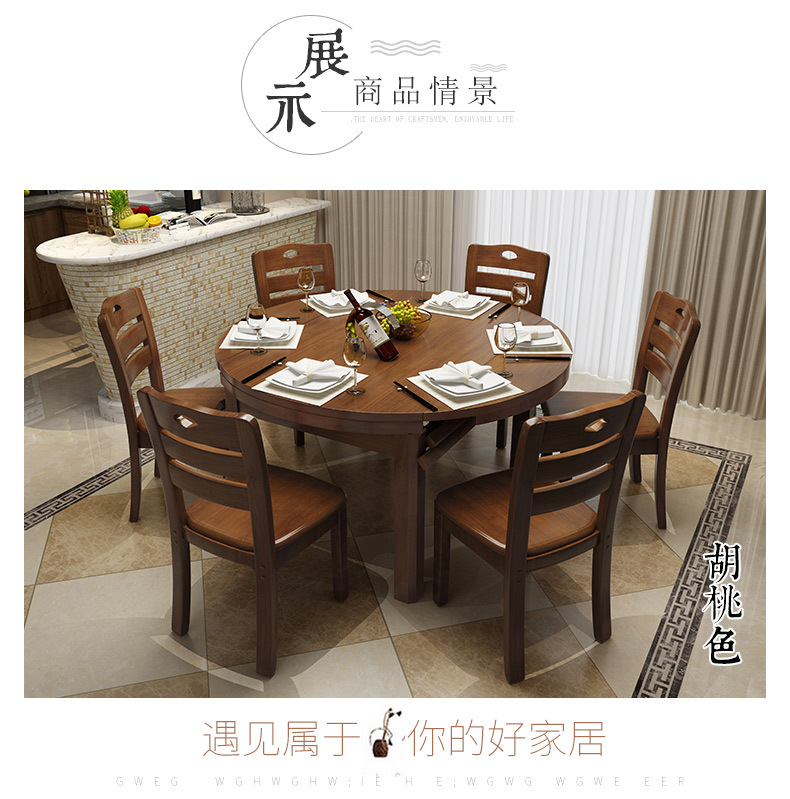 Bộ bàn ghế ăn gỗ đặc kết hợp kính gấp hộ gia đình 4 người 6 người Bàn ăn tròn đơn giản kiểu Trung Quốc gỗ cao su gia đình – Bàn ăn nhập khẩu cao cấp