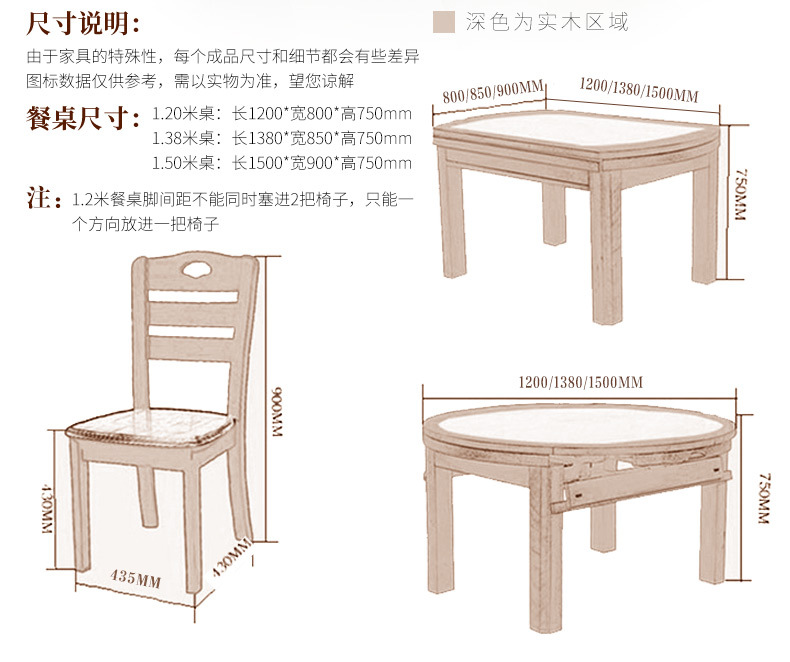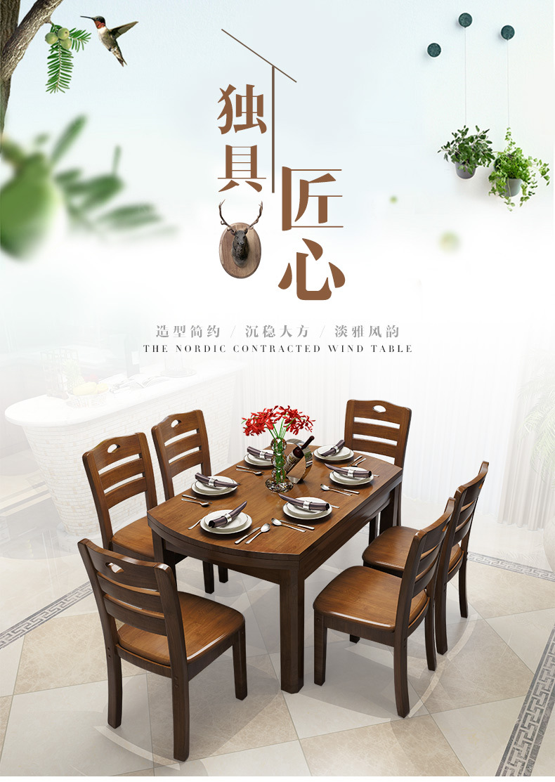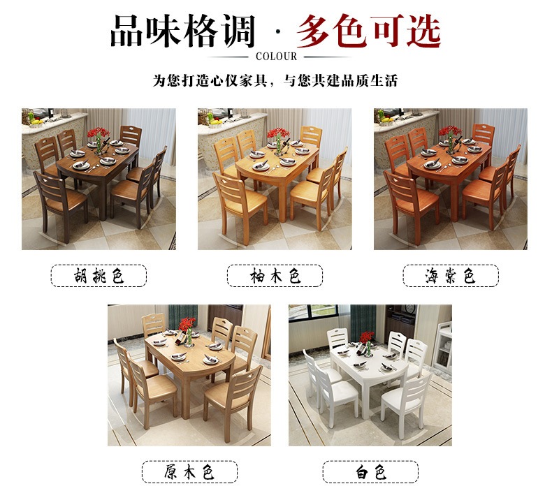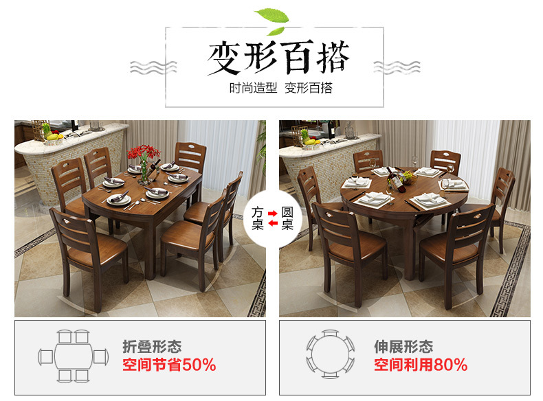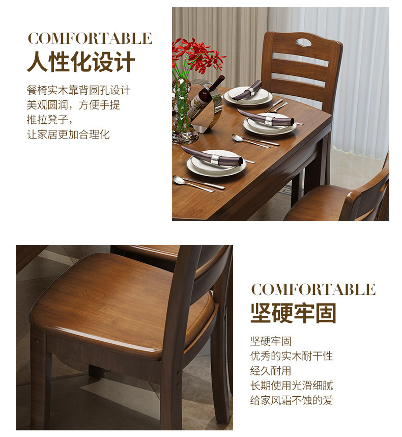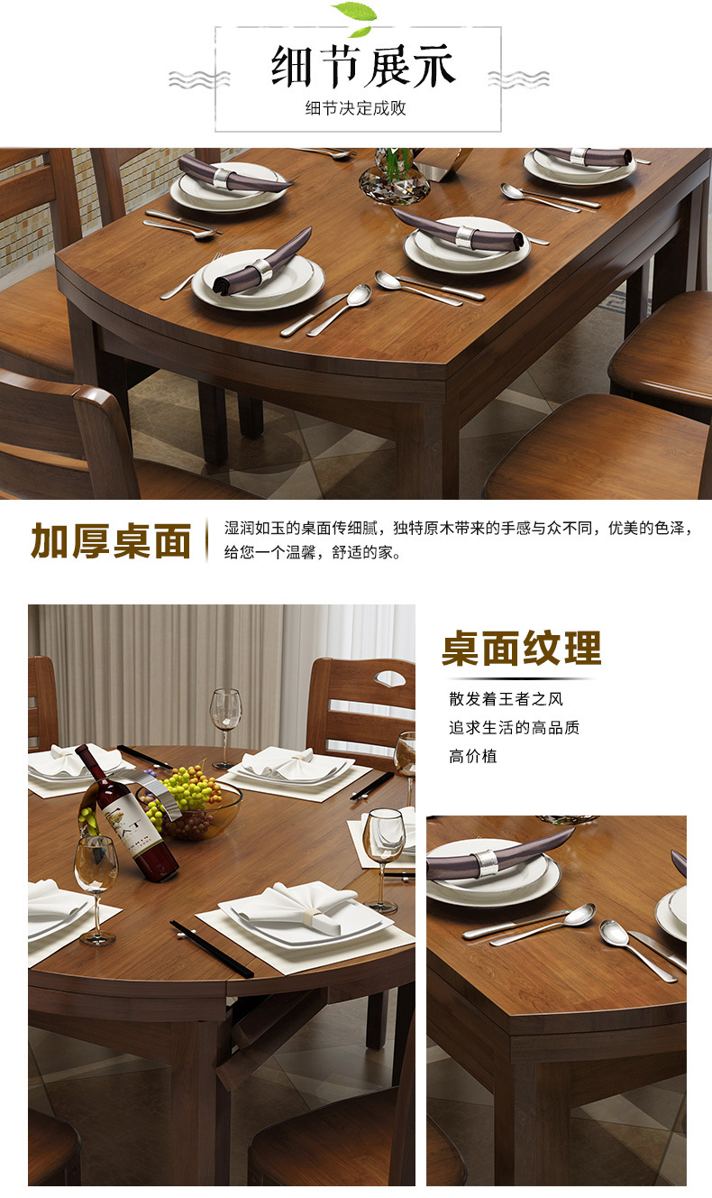 Bộ bàn ghế ăn gỗ đặc kết hợp kính gấp hộ gia đình 4 người 6 người Bàn ăn tròn đơn giản kiểu Trung Quốc gỗ cao su gia đình – Bàn ăn nhập khẩu cao cấp