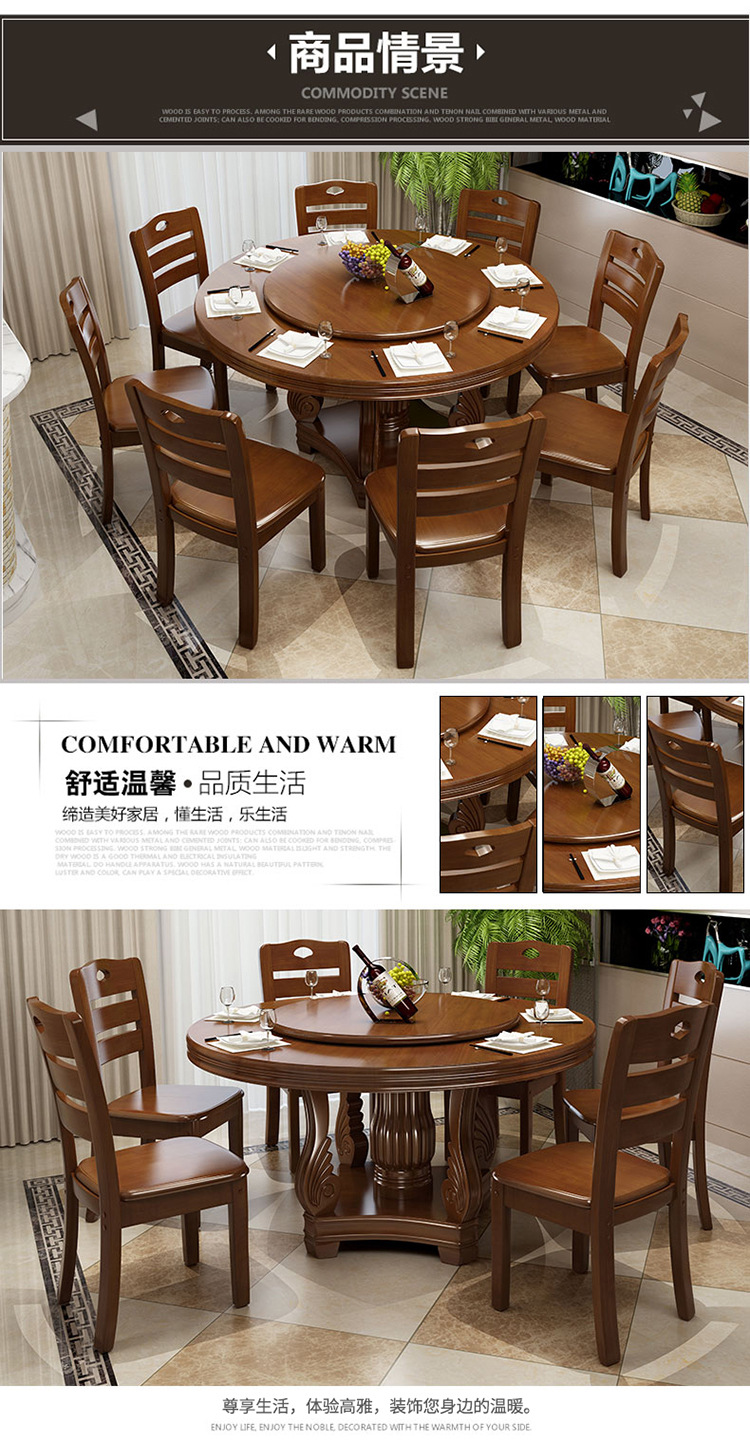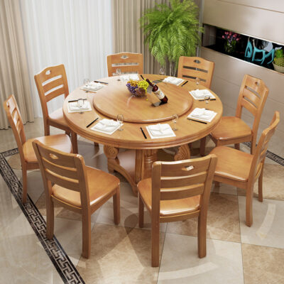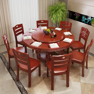 Bộ bàn ghế ăn gỗ đặc kết hợp phòng khách nhà chung cư nhỏ bàn ăn kiểu Trung Quốc với bàn xoay khách sạn bàn tròn lớn là sản phẩm nổi bật trong dòng bàn ăn nhập khẩu, thiết kế hiện đại và sang trọng, phù hợp với nhiều không gian nội thất cao cấp.