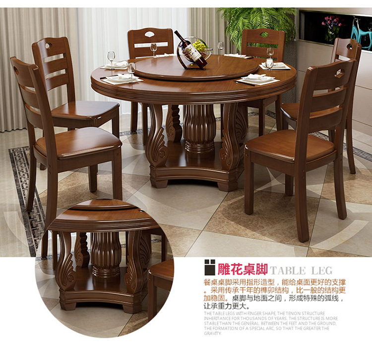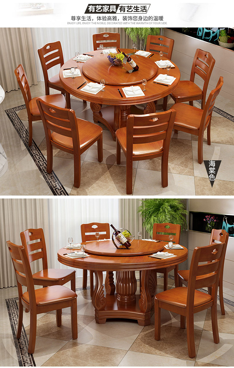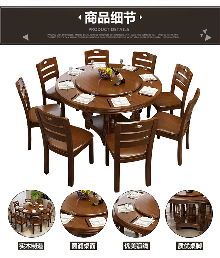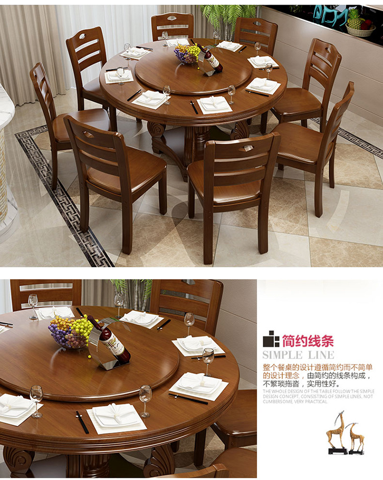 Bộ bàn ghế ăn gỗ đặc kết hợp phòng khách nhà chung cư nhỏ bàn ăn kiểu Trung Quốc với bàn xoay khách sạn bàn tròn lớn – Bàn ăn nhập khẩu cao cấp