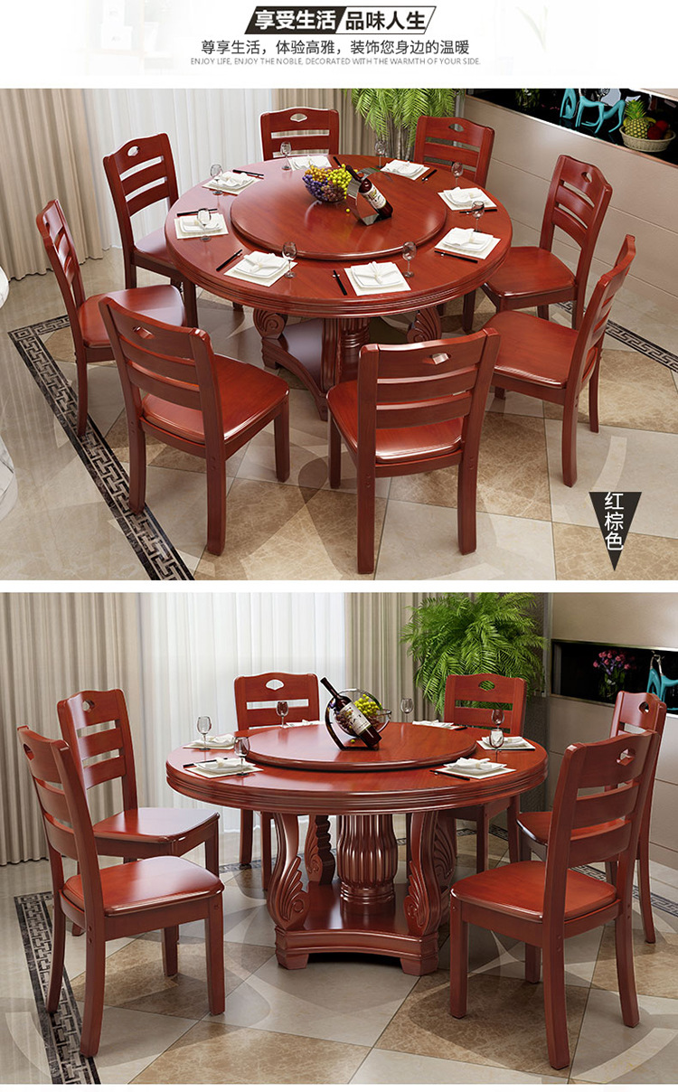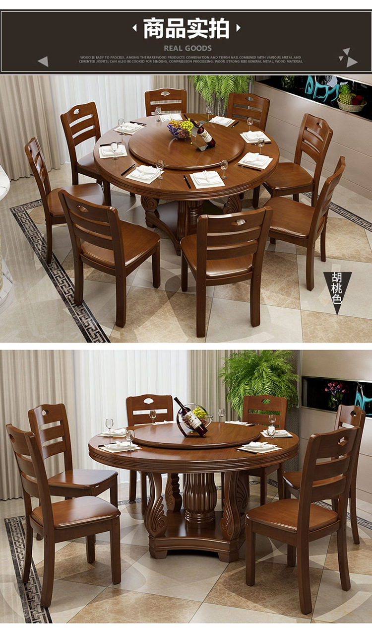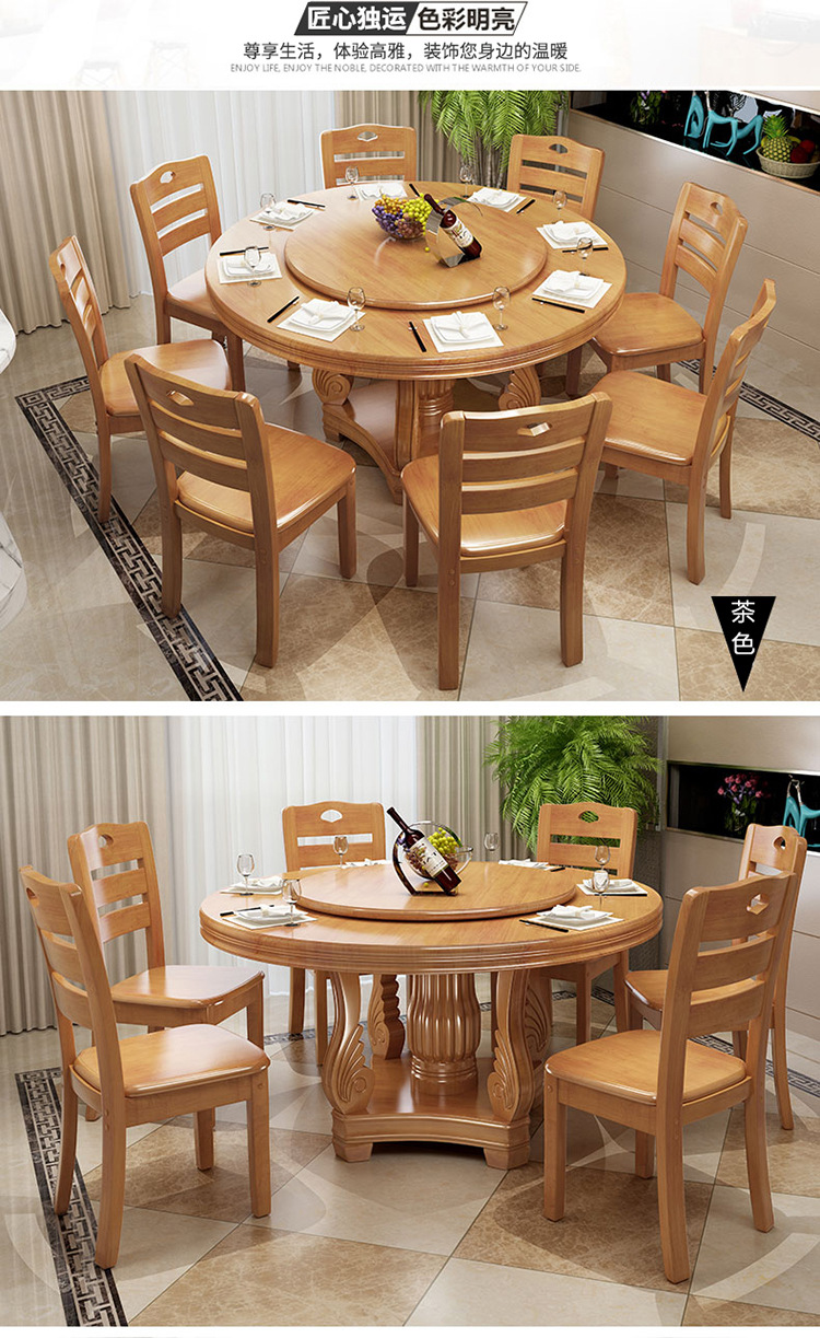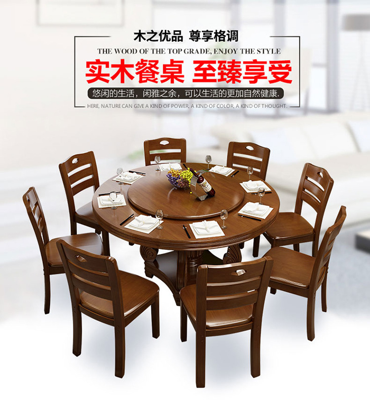 Bộ bàn ghế ăn gỗ đặc kết hợp phòng khách nhà chung cư nhỏ bàn ăn kiểu Trung Quốc với bàn xoay khách sạn bàn tròn lớn – Bàn ăn nhập khẩu cao cấp
