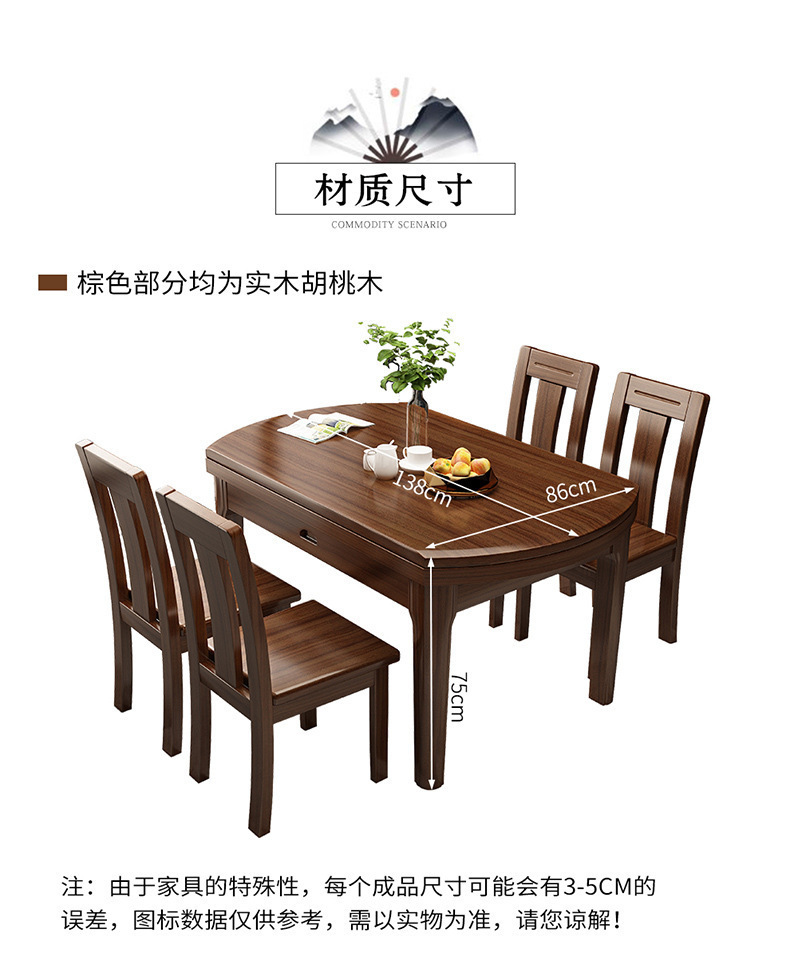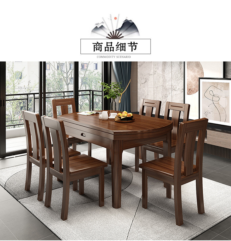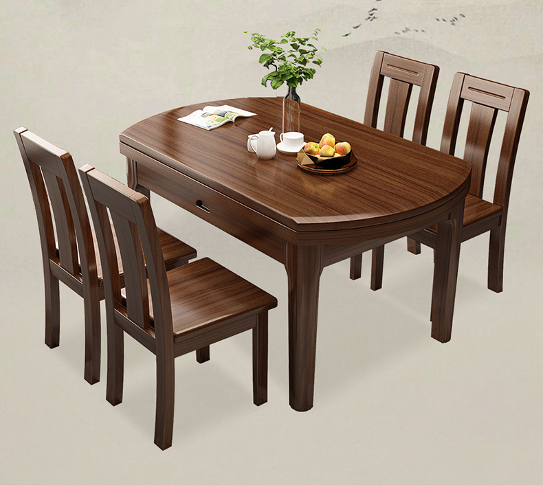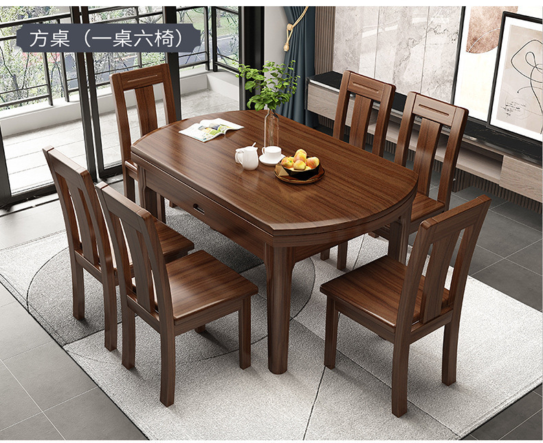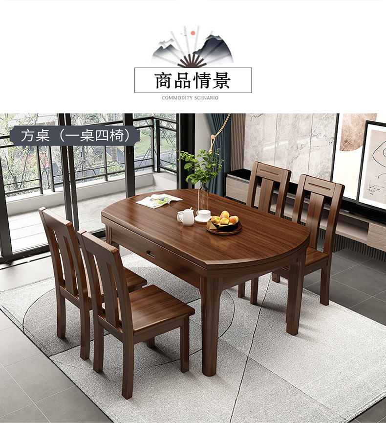 Bộ bàn ghế ăn gỗ óc chó phòng khách Bàn hình bán nguyệt Trung Quốc bệ nhảy hình chữ nhật nhà 1 bàn 4 ghế 6 ghế 8 ghế kết hợp – Bàn ăn nhập khẩu cao cấp