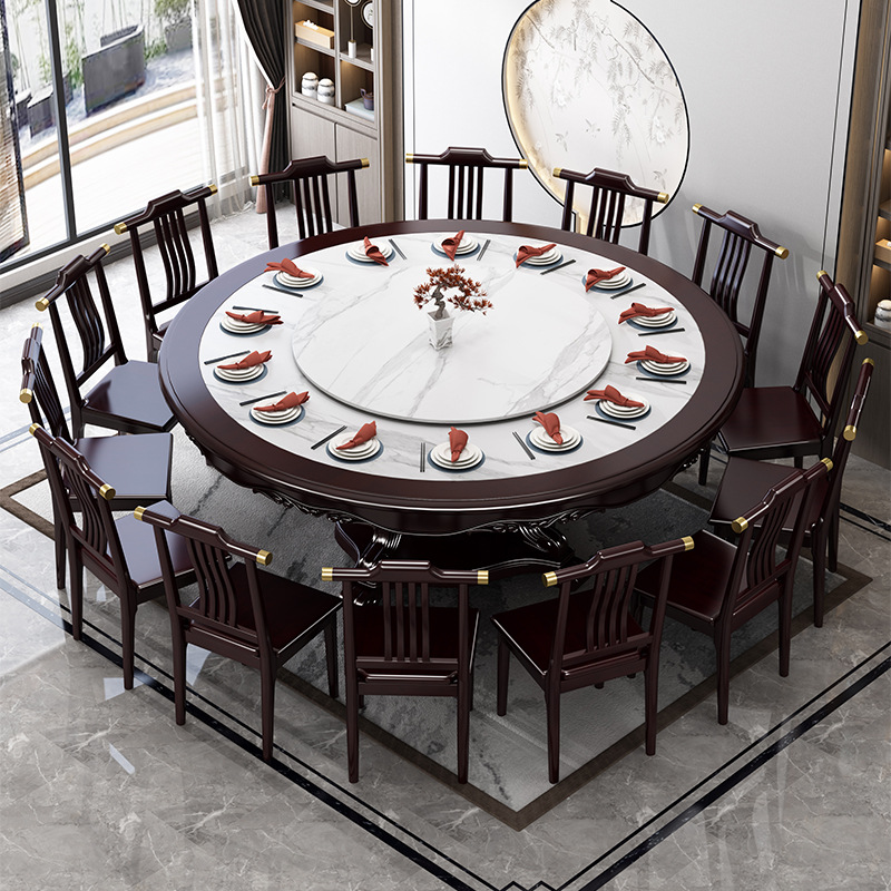 Bộ bàn ghế ăn kết hợp bàn đá kiểu Trung Quốc mới Bàn tròn khách sạn 10 người Bàn ăn 2m có bàn xoay 1,8m Bàn ăn bàn gỗ