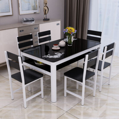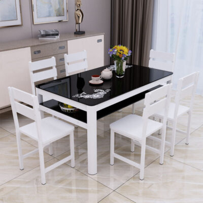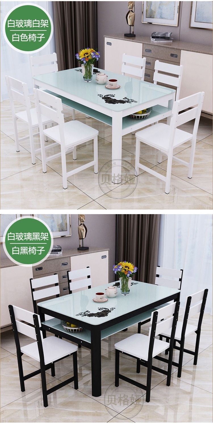Bộ bàn ghế ăn kết hợp kính cường lực nhà chung cư nhỏ 4 người 6 người bàn ăn hình chữ nhật 2 lớp tối giản hiện đại – Bàn ăn nhập khẩu cao cấp