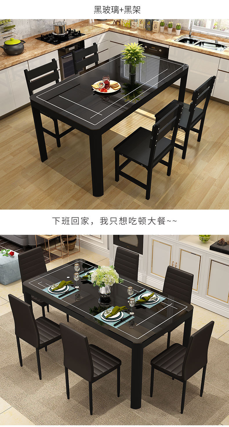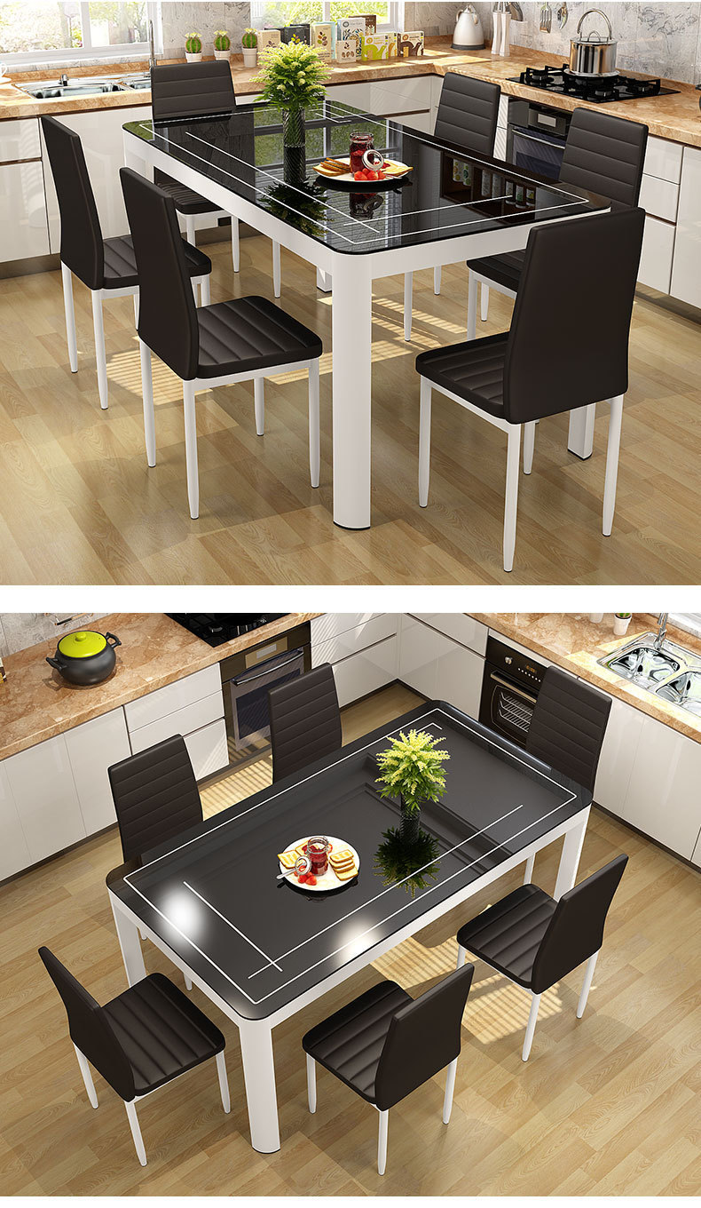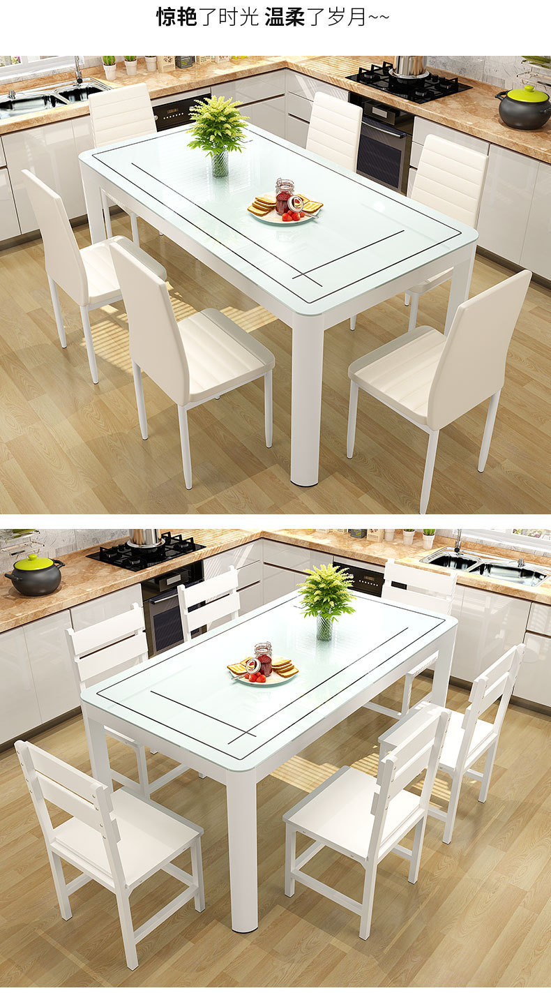 Bộ bàn ghế ăn kết hợp nhà chung cư nhỏ 4 người 6 người bàn ăn hình chữ nhật bàn ăn kính cường lực đơn giản hiện đại