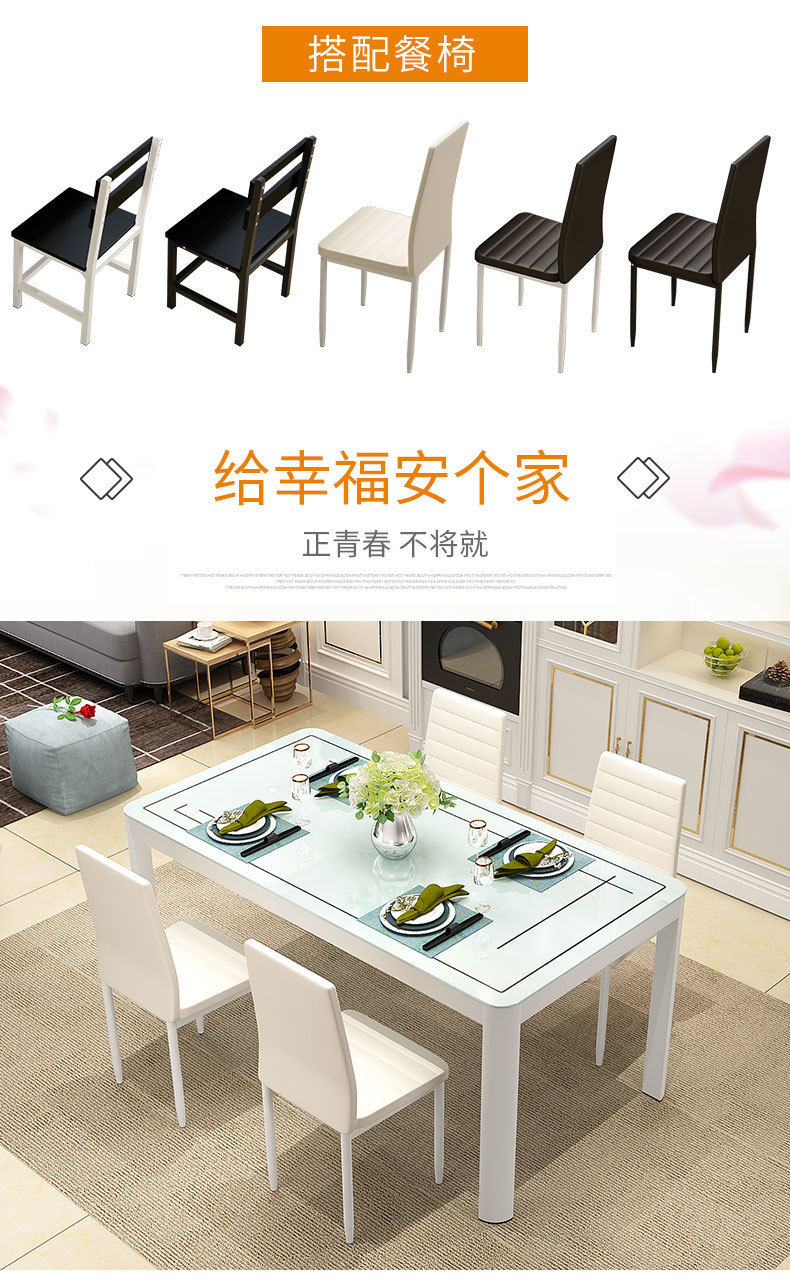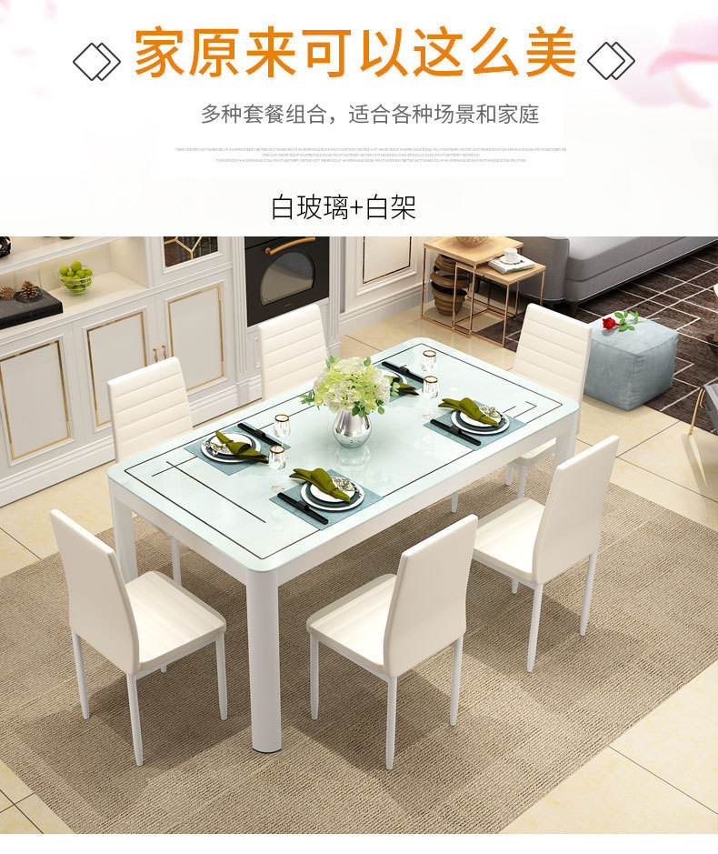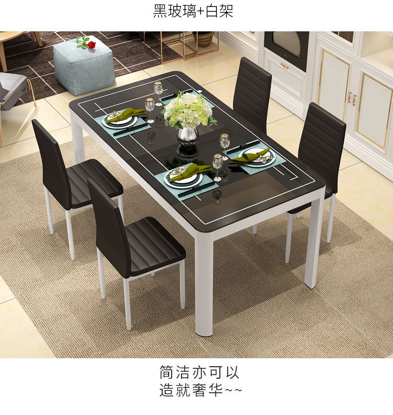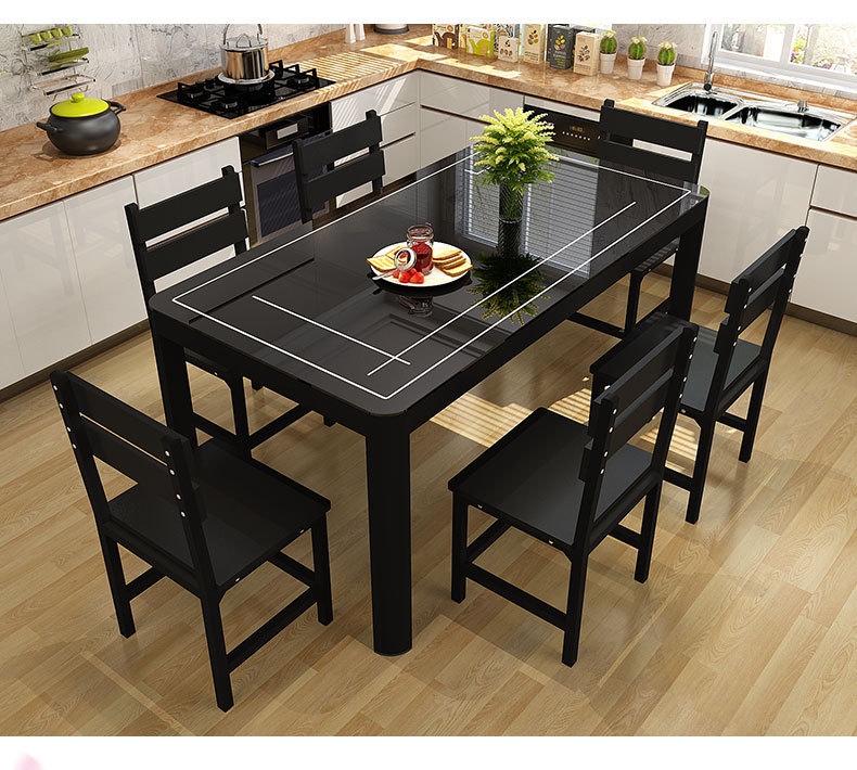 Bộ bàn ghế ăn kết hợp nhà chung cư nhỏ 4 người 6 người bàn ăn hình chữ nhật bàn ăn kính cường lực đơn giản hiện đại