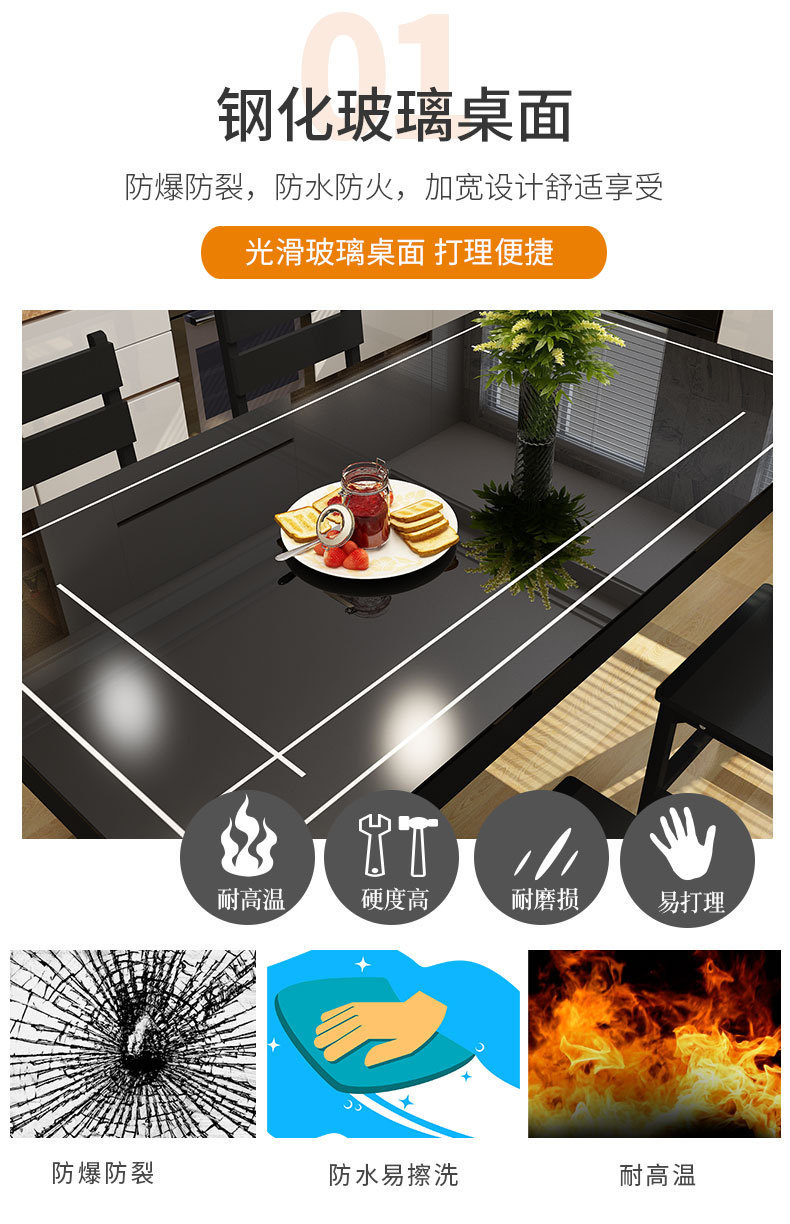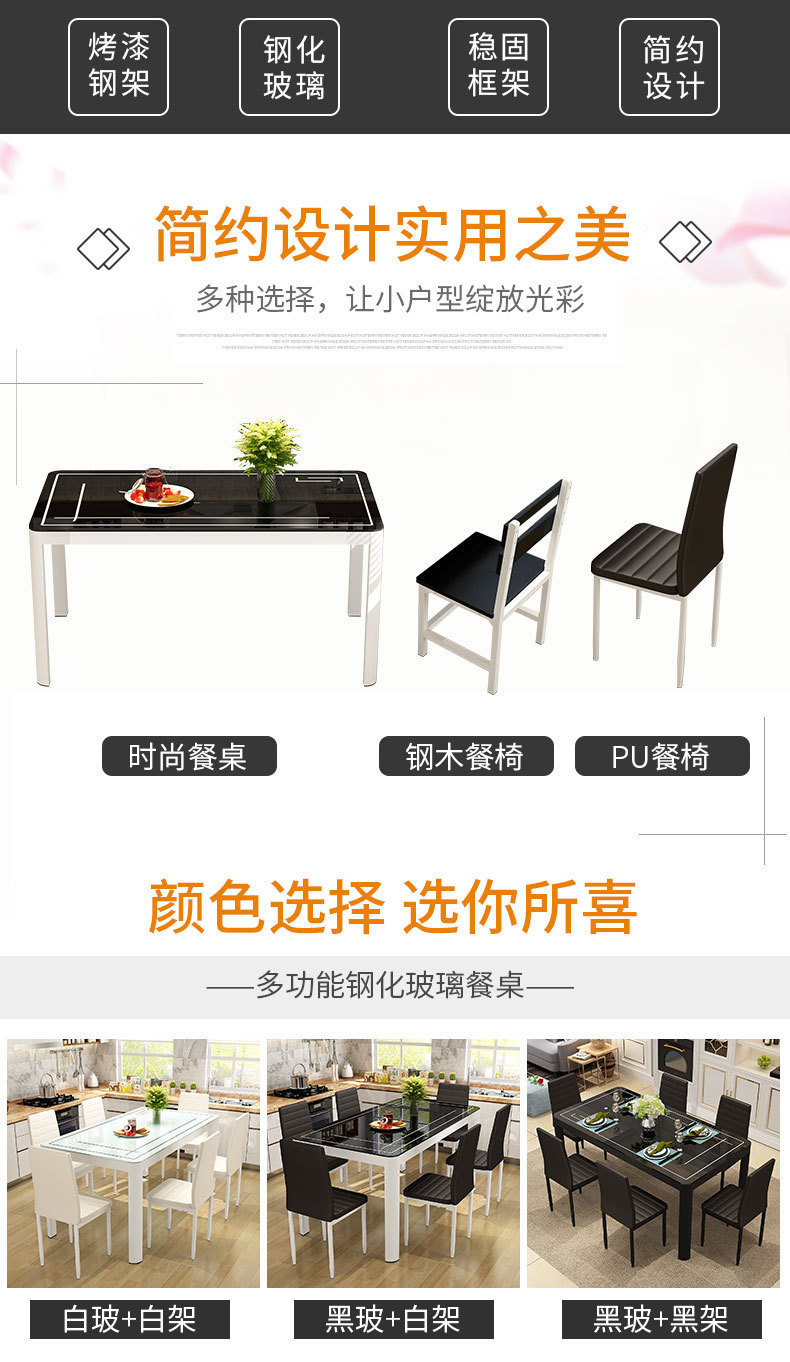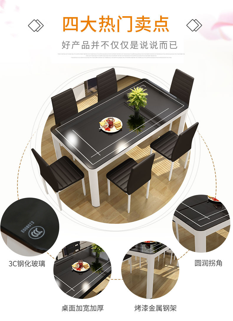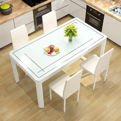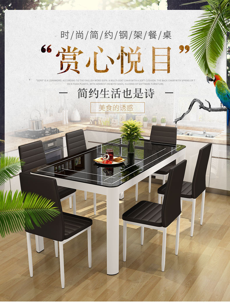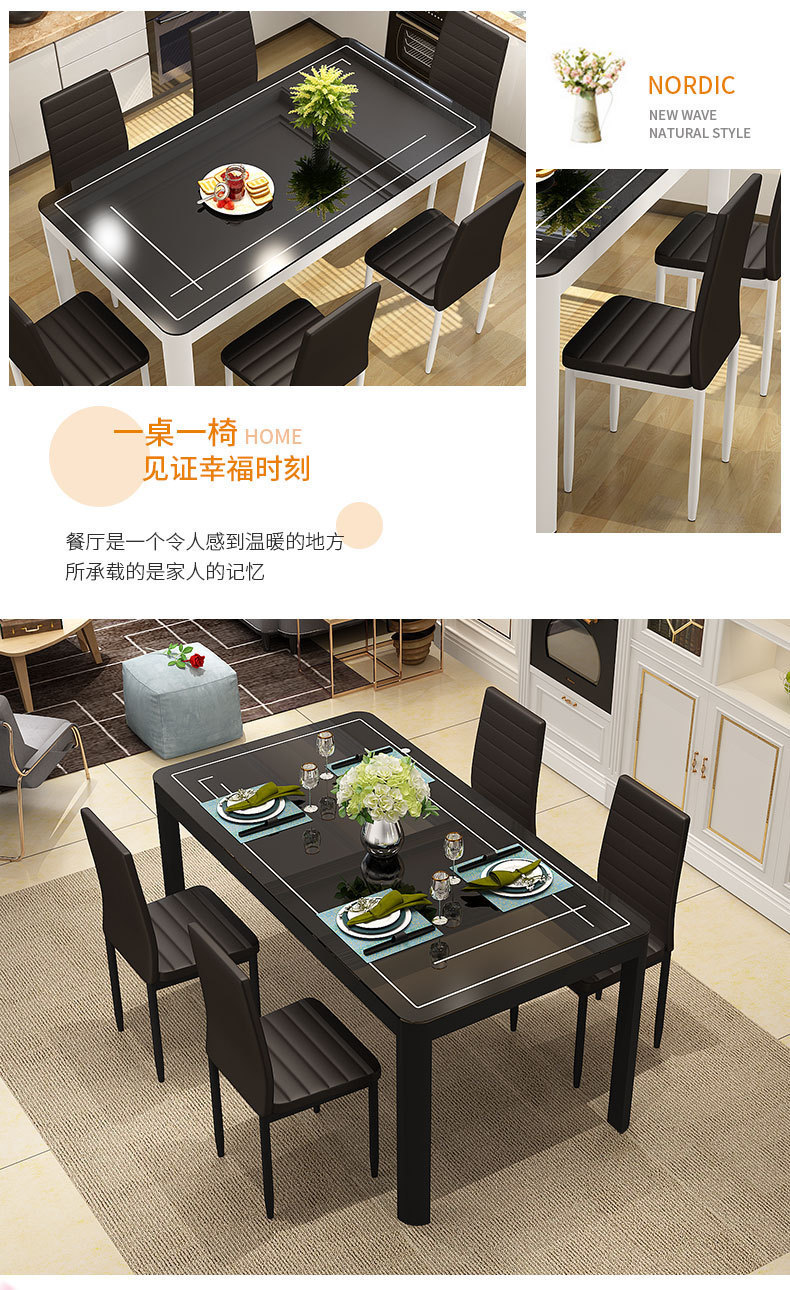 Bộ bàn ghế ăn kết hợp nhà chung cư nhỏ 4 người 6 người bàn ăn hình chữ nhật bàn ăn kính cường lực đơn giản hiện đại – Bàn ăn nhập khẩu cao cấp