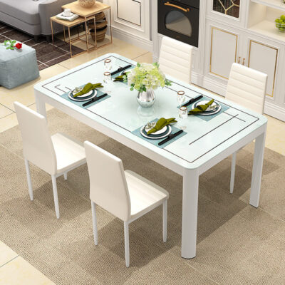 Bộ bàn ghế ăn kết hợp nhà chung cư nhỏ 4 người 6 người bàn ăn hình chữ nhật bàn ăn kính cường lực đơn giản hiện đại là sản phẩm nổi bật trong dòng bàn ăn nhập khẩu, thiết kế hiện đại và sang trọng, phù hợp với nhiều không gian nội thất cao cấp.