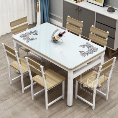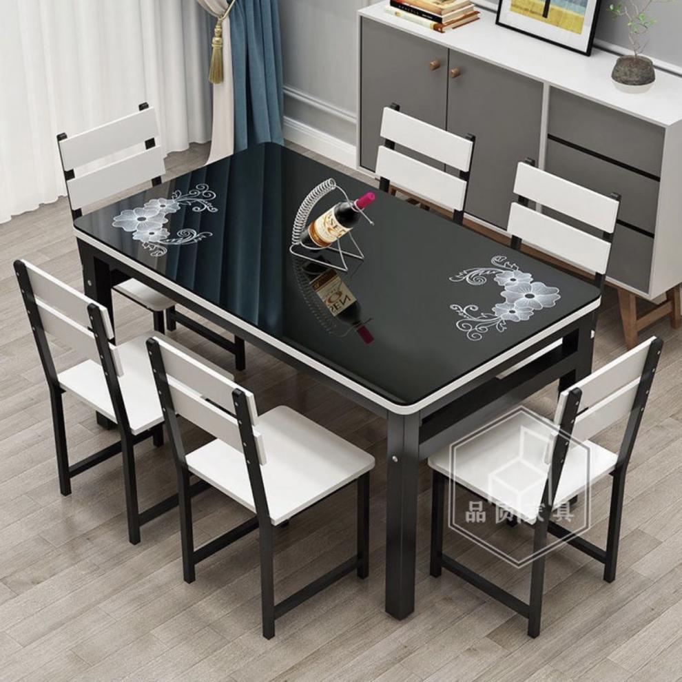 Bộ bàn ghế ăn kết hợp nhà tối giản hiện đại gia đình bàn ăn 4 người 6 người bàn ăn hình chữ nhật bàn ăn mặt kính – Bàn ăn nhập khẩu cao cấp