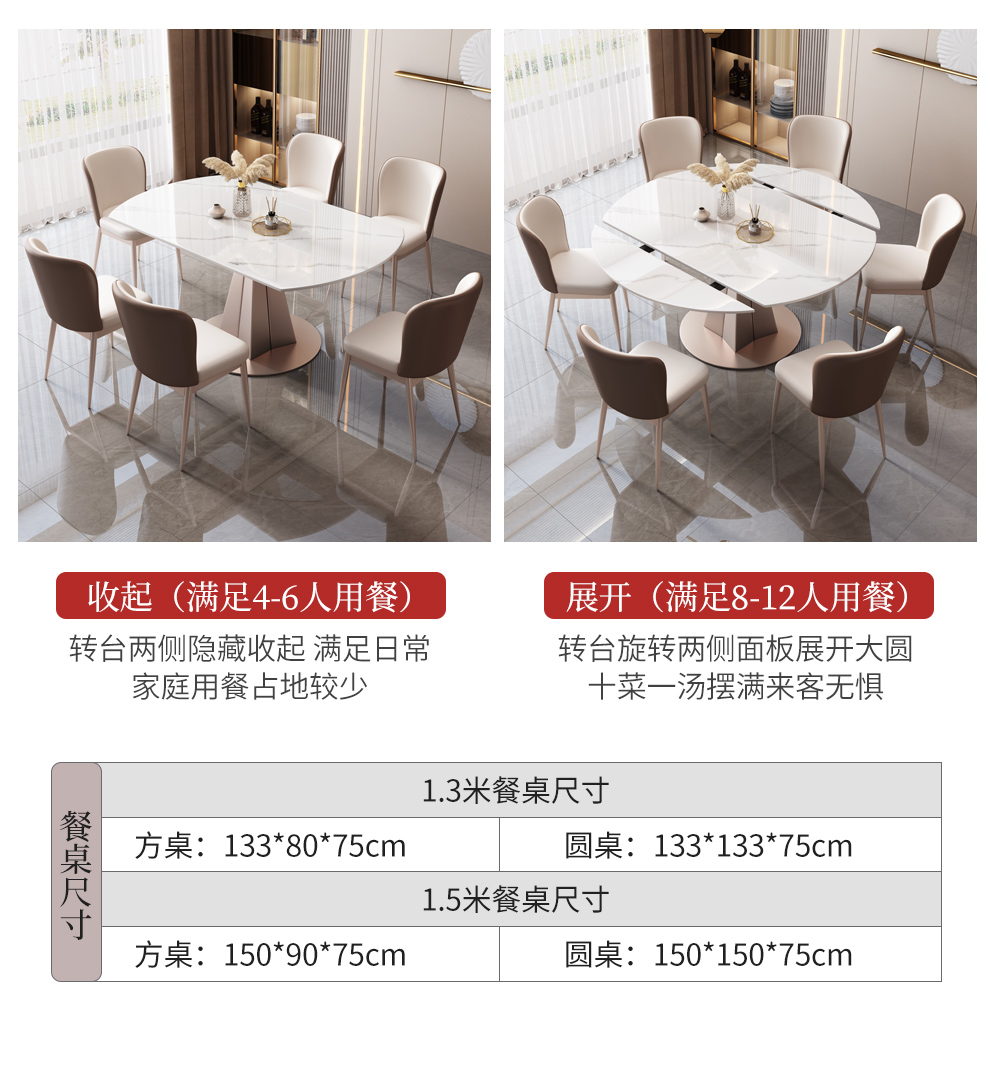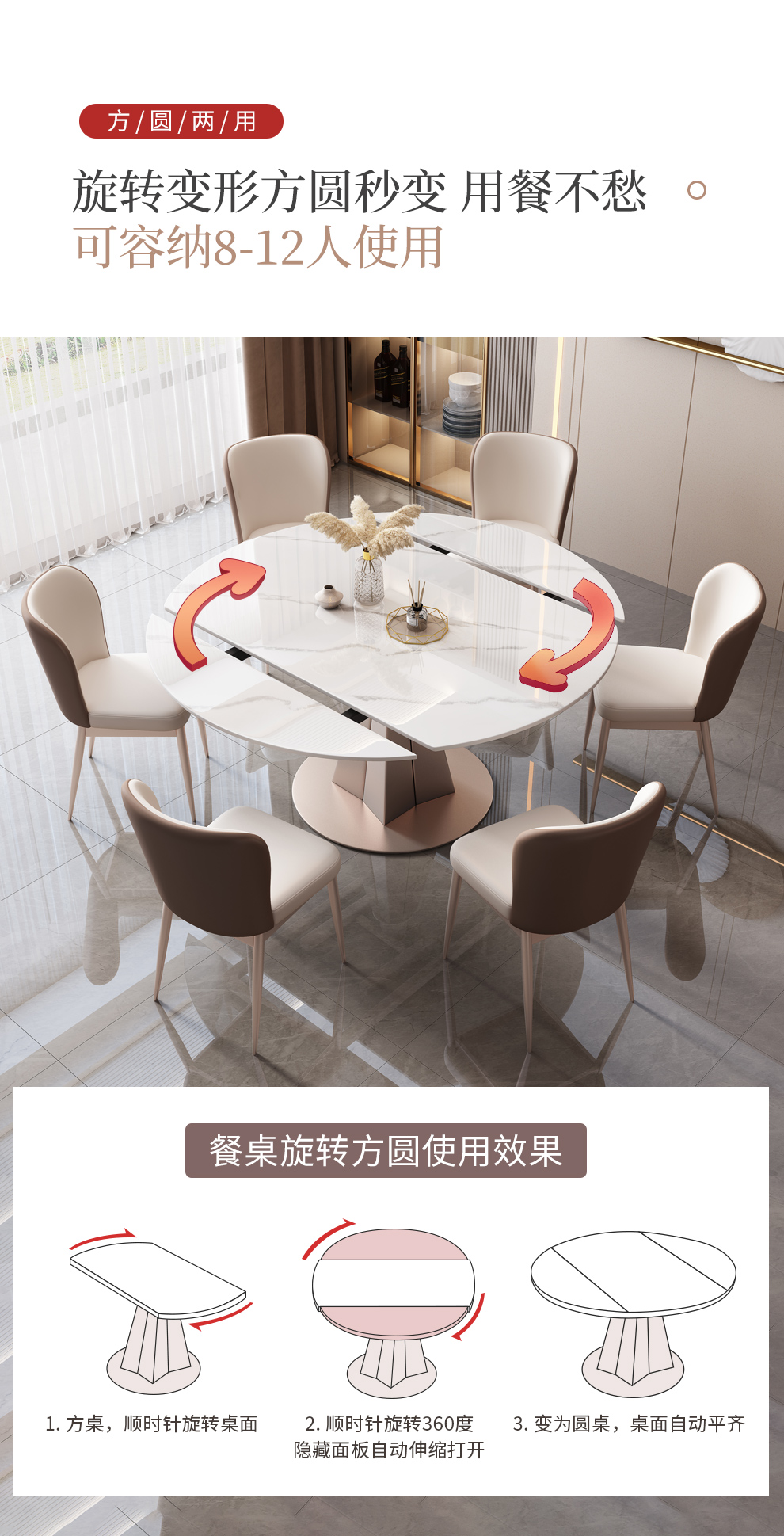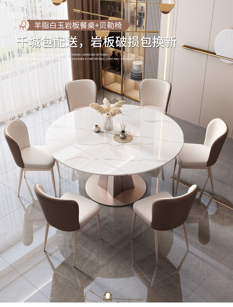Bộ bàn ghế ăn mặt đá nhẹ sang trọng kết hợp đơn giản hiện đại gia đình xoay gấp vuông và tròn bàn tròn có thể thu vào hai mục đích