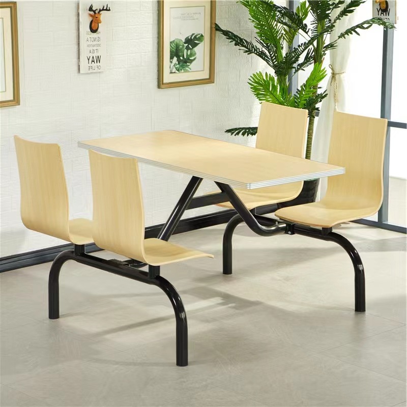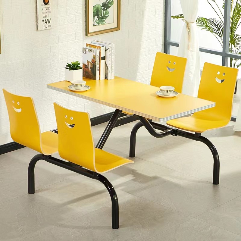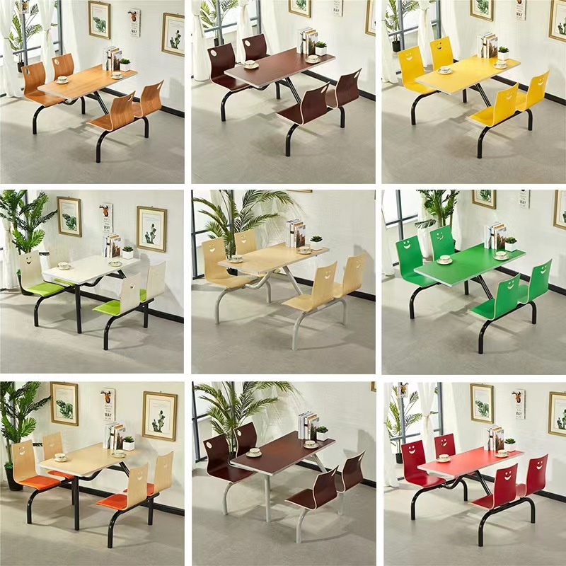Bộ bàn ghế ăn nhanh kết hợp trà sữa ăn nhanh nhà hàng ăn nhanh bàn ghế lưng nhân viên trường học căng tin bộ bàn ghế dính liền