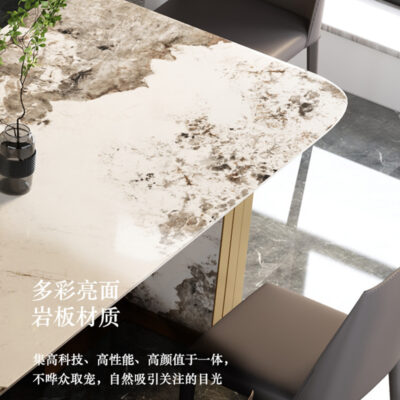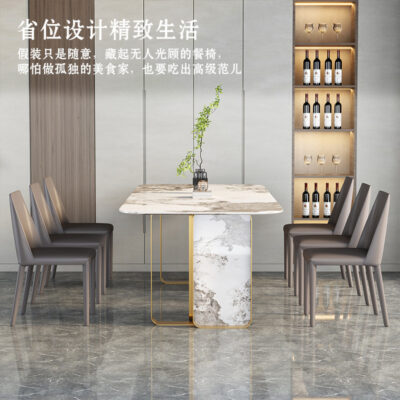 Bộ bàn ghế ăn phiến đá sáng kiểu Ý hiện đại tối giản sang trọng phong cách biệt thự kết hợp bàn ăn hình chữ nhật nhà