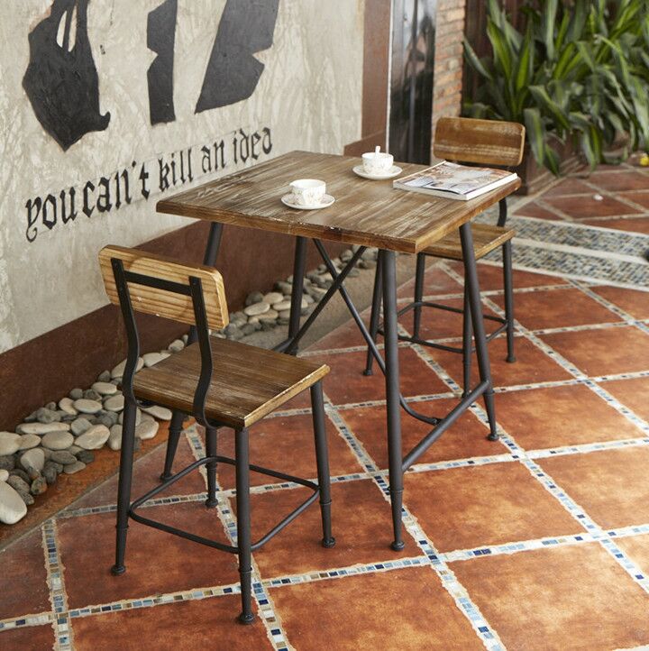 Bộ bàn ghế ăn sắt rèn gỗ nguyên khối nhà hàng phong cách cổ – BGCF-968 – Mã sản phẩm BGCF-968. Bộ bàn ghế ăn sắt rèn gỗ nguyên khối nhà hàng phong cách cổ điển bàn ghế cũ quán cà phê quán trà sữa quầy bar bàn ghế lưng ghế
