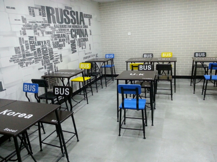 Bộ bàn ghế ăn sắt rèn gỗ nguyên khối nhà hàng phong cách cổ điển bàn ghế cũ quán cà phê quán trà sữa quầy bar bàn ghế lưng ghế