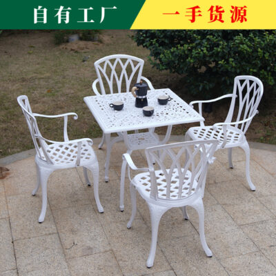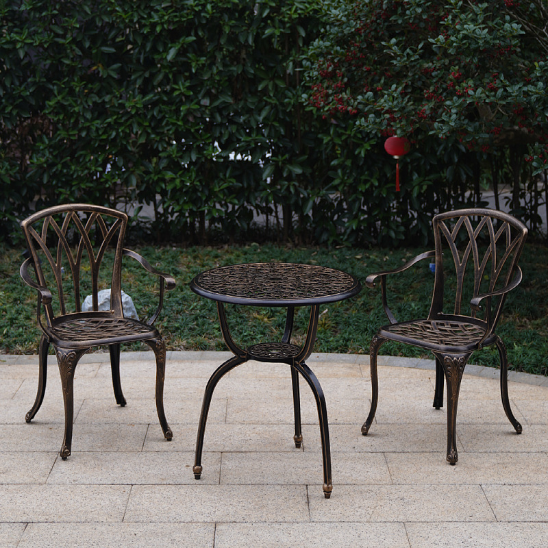Bộ bàn ghế giải trí ngoài trời bằng nhôm đúc có tay vịn sắt rèn sân vườn sân biệt thự ban công kim loại bộ ba món