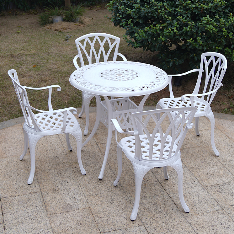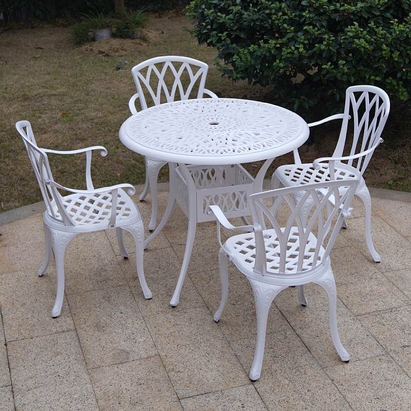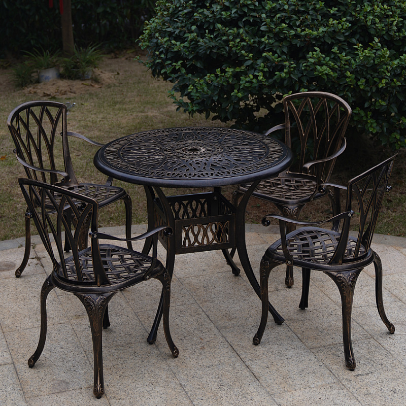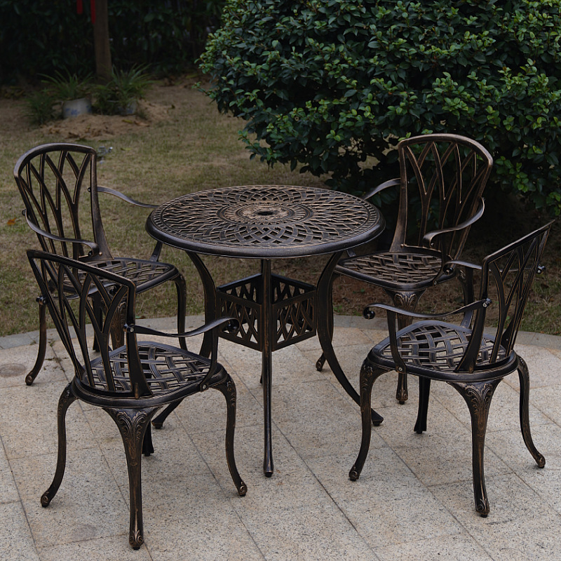 Bộ bàn ghế giải trí ngoài trời bằng nhôm đúc có tay vịn sắt rèn sân vườn sân biệt thự ban công kim loại bộ ba món